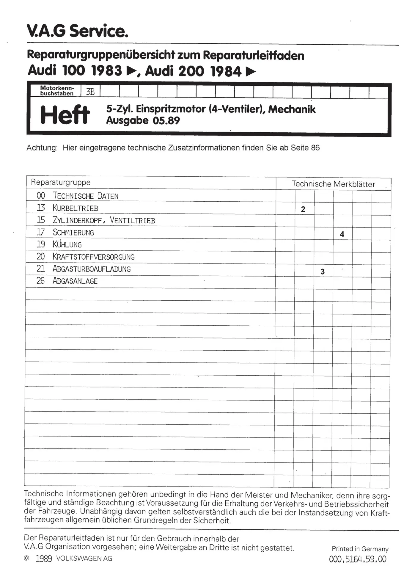 Der Audi 100/200 Reparaturleitfaden ist ein lizenzierter Nachdruck der originalen Werkstattunterlagen. Diese Anleitung wird von Vertragswerkstätten verwendet und enthält alle technischen Informationen für fachgerechte Reparaturen.