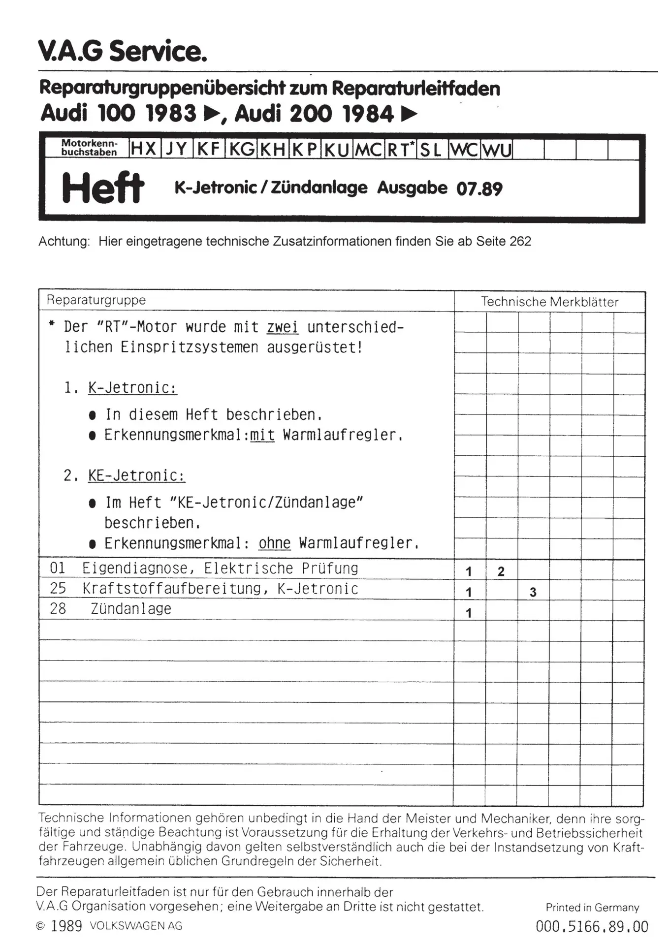 Der Audi 100/200 Reparaturleitfaden ist ein lizenzierter Nachdruck der originalen Werkstattunterlagen. Diese Anleitung wird von Vertragswerkstätten verwendet und enthält alle technischen Informationen für fachgerechte Reparaturen.