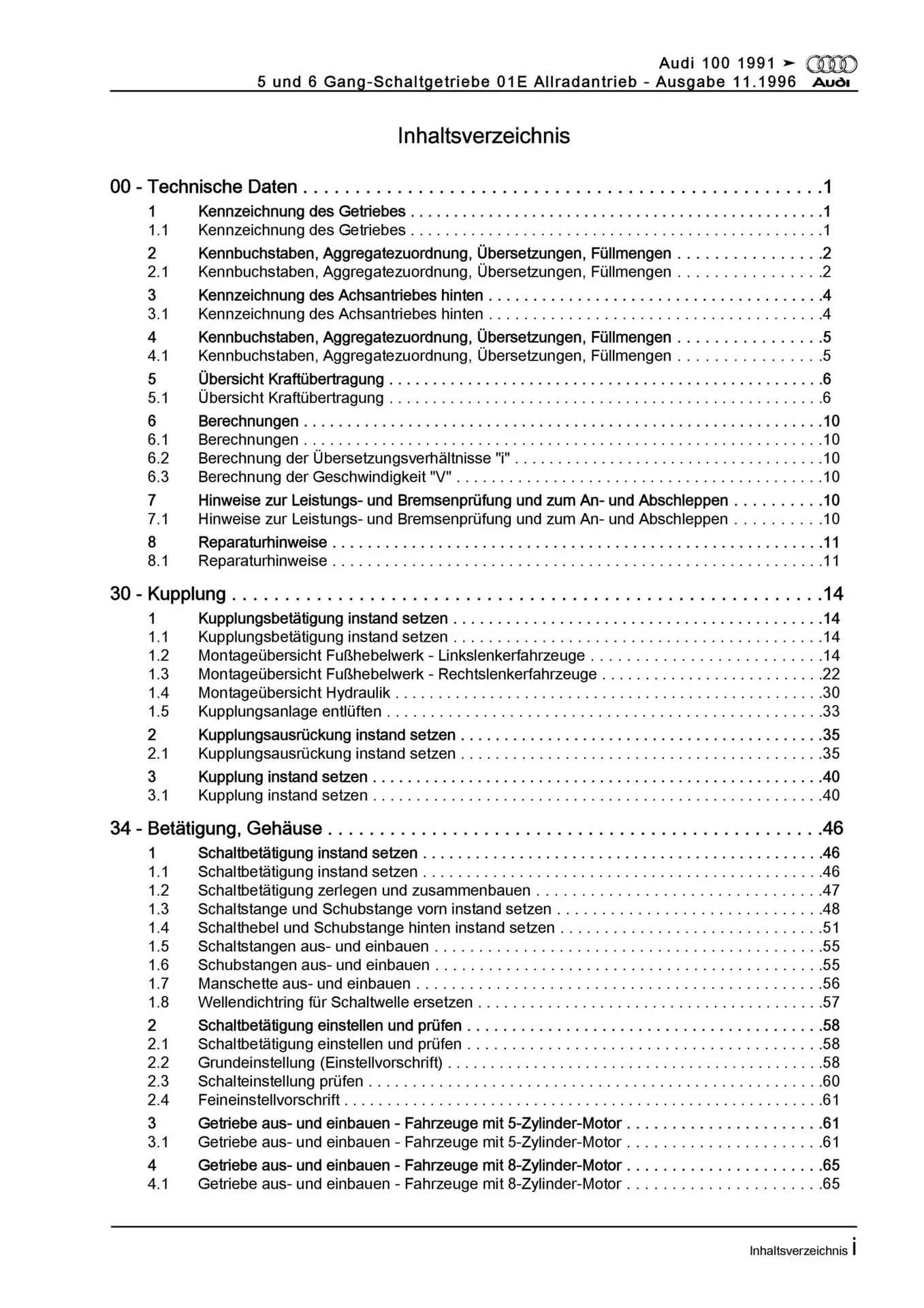 Audi 100 4A 1990-1997 5-6 Gang Schaltgetriebe 01E Kupplung Reparaturanleitung