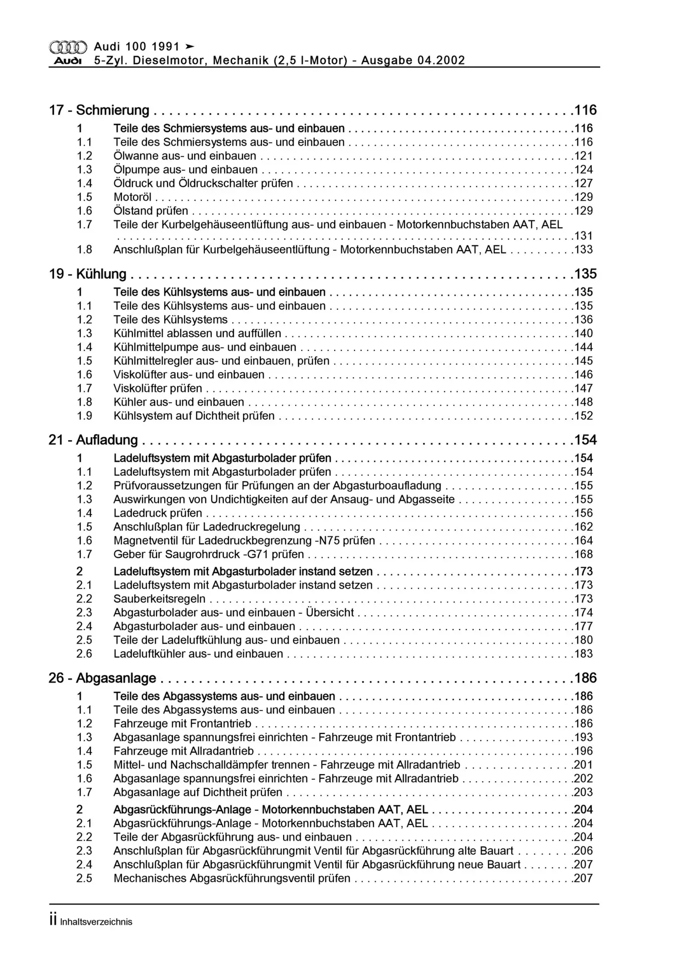 Audi 100 4A 1990-1997 5-Zyl. Dieselmotor 115-140 PS Mechanik Reparaturanleitung