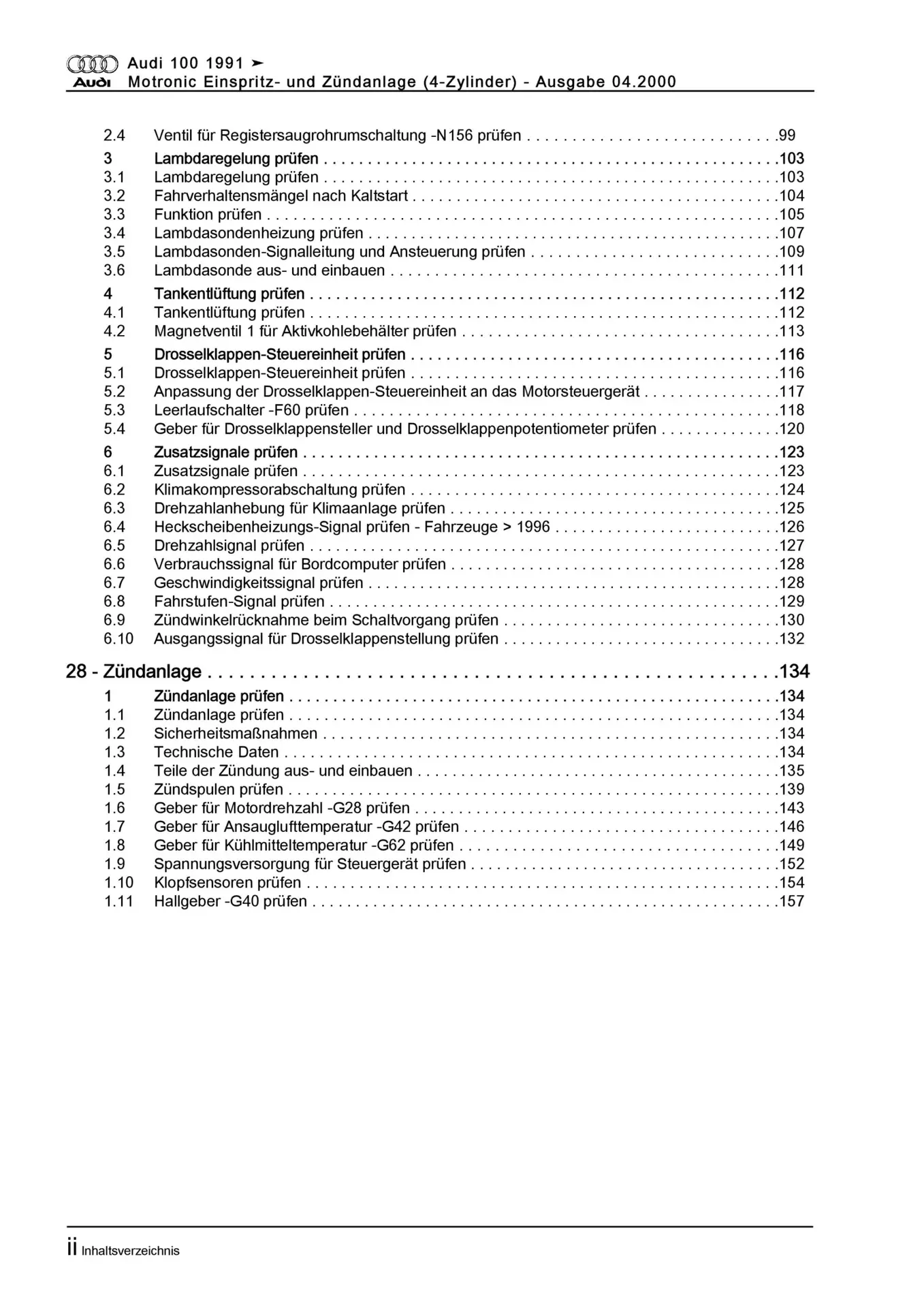 Diese Reparaturanleitung enthält detaillierte Beschreibungen zu Aus- und Einbauarbeiten, Einstell- und Prüfarbeiten sowie zahlreiche Grafiken, Bilder und Explosionszeichnungen. Die Kunststoffringbindung ermöglicht ein problemloses Umschlagen bis zu 180°.