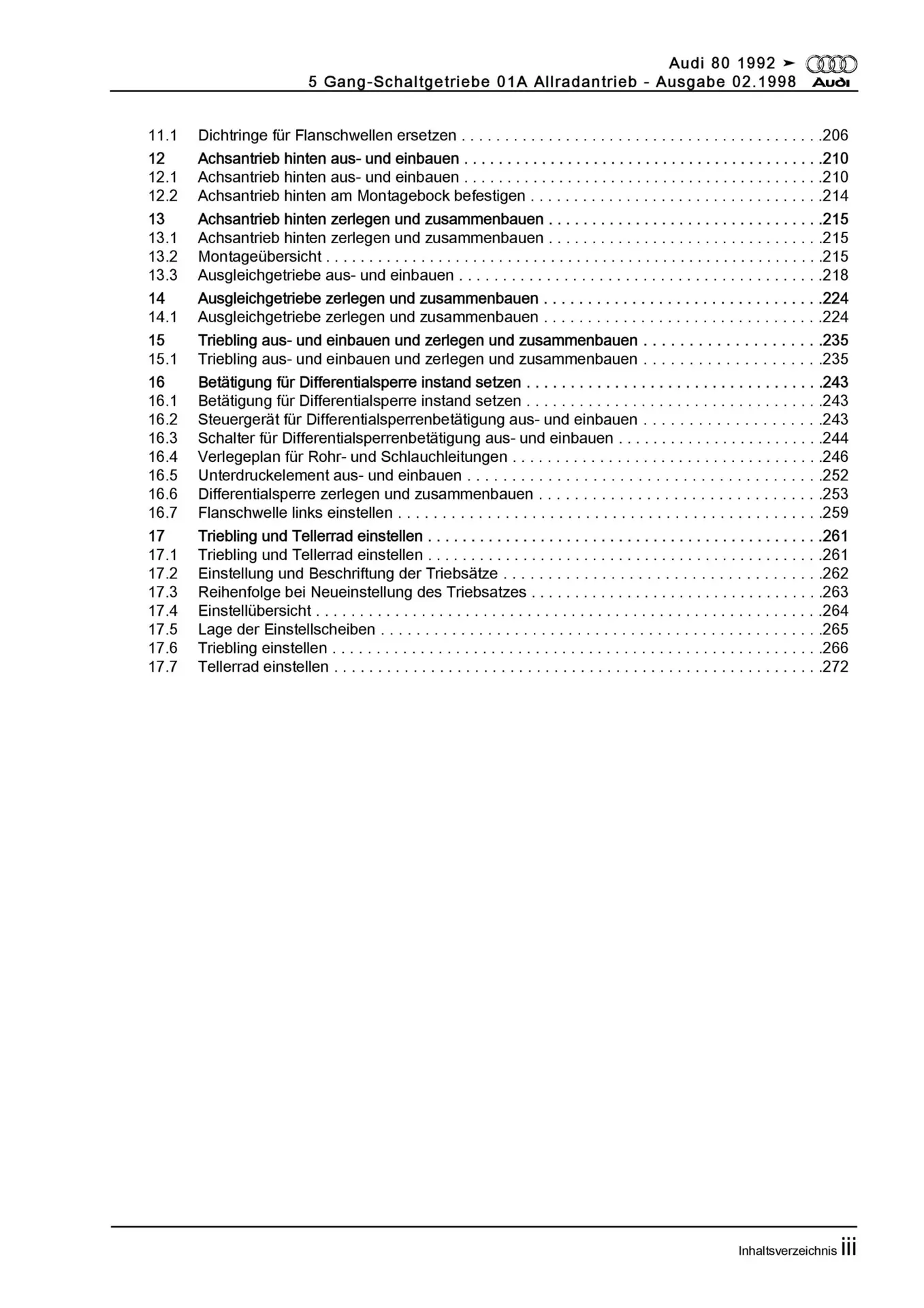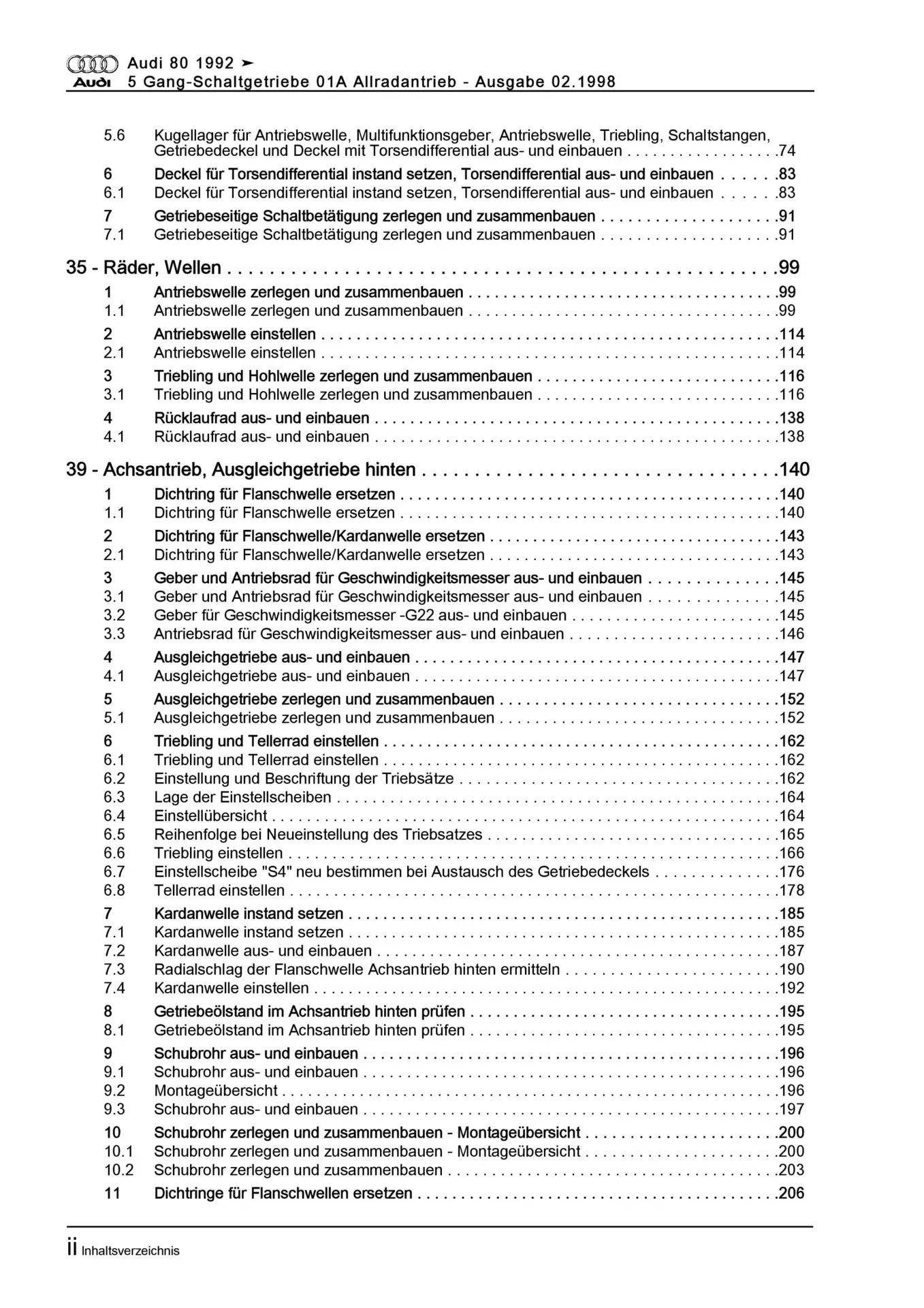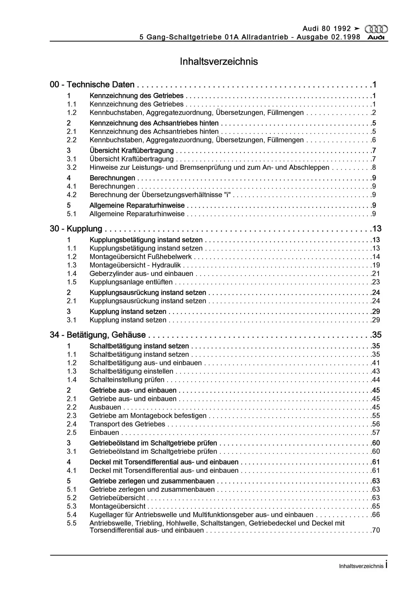 Audi 80 8C 1991-1995 5 Gang Schaltgetriebe 01A AWD Kupplung Reparaturanleitung