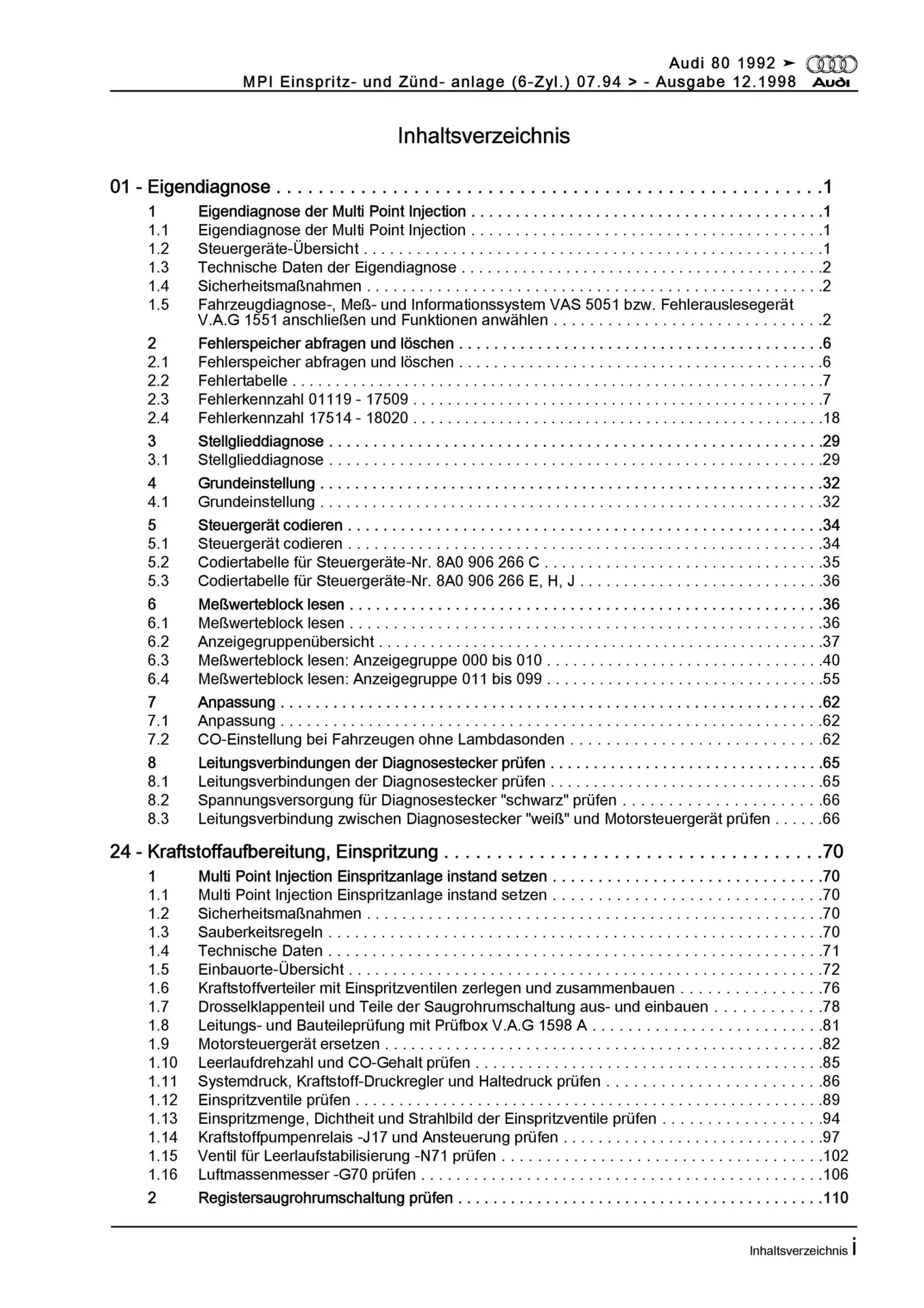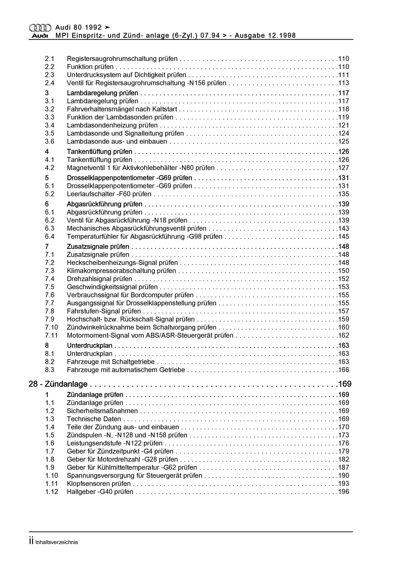 Audi 80 8C 1994-1995 6-Zyl. MPI Einspritz- Zündanlage 2,8l Reparaturanleitung