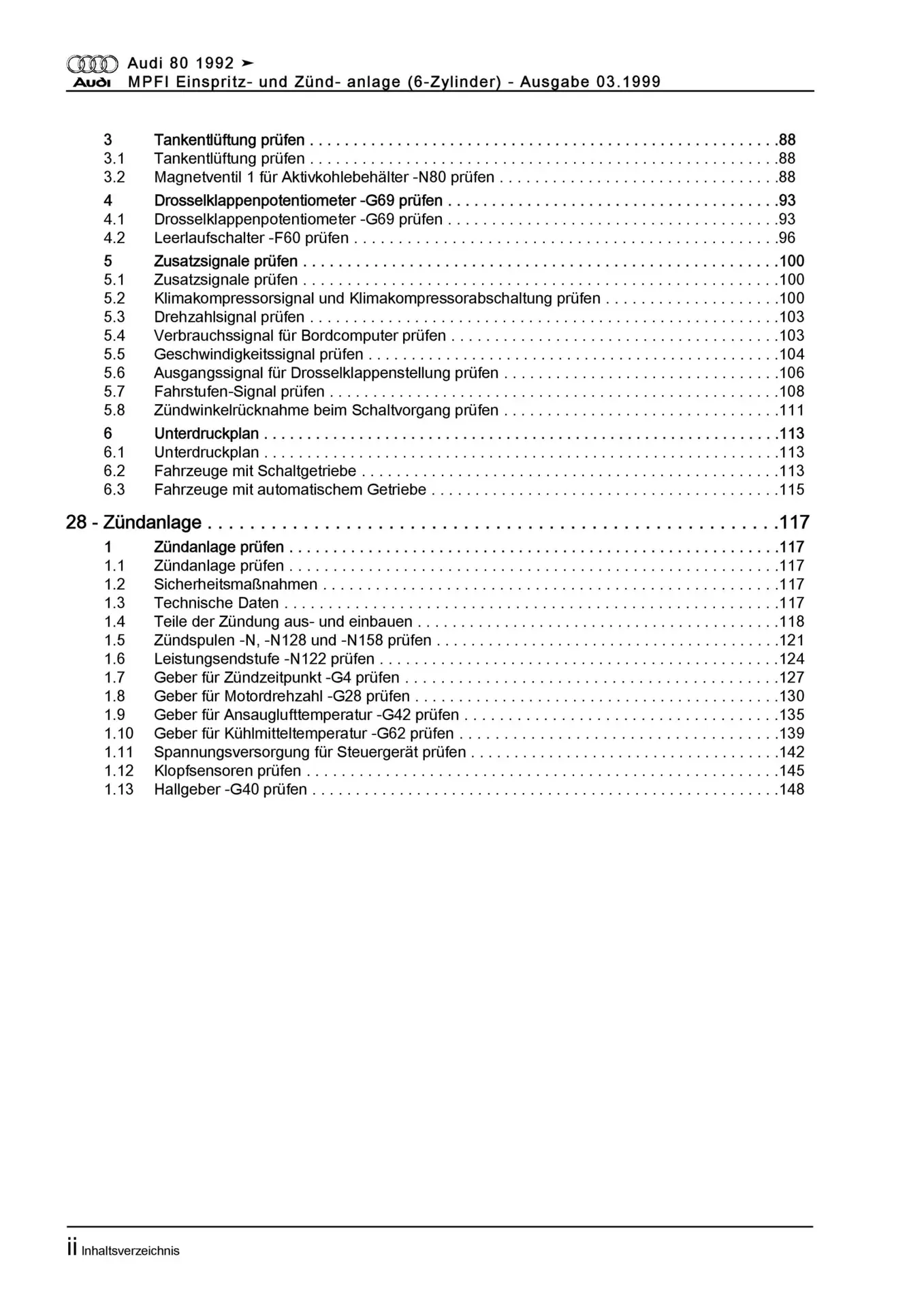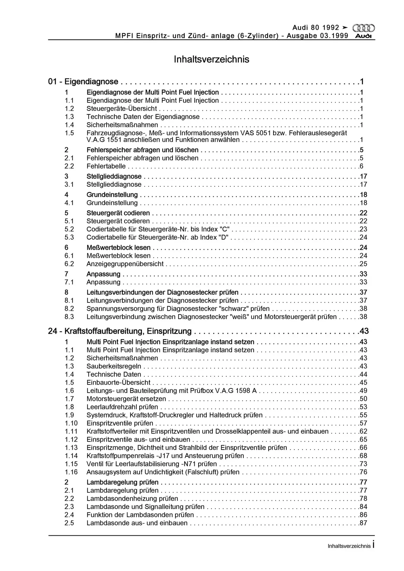 Audi 80 Typ 8C 1991-1995 6-Zyl. MPFI Einspritz- Zündanlage Reparaturanleitung