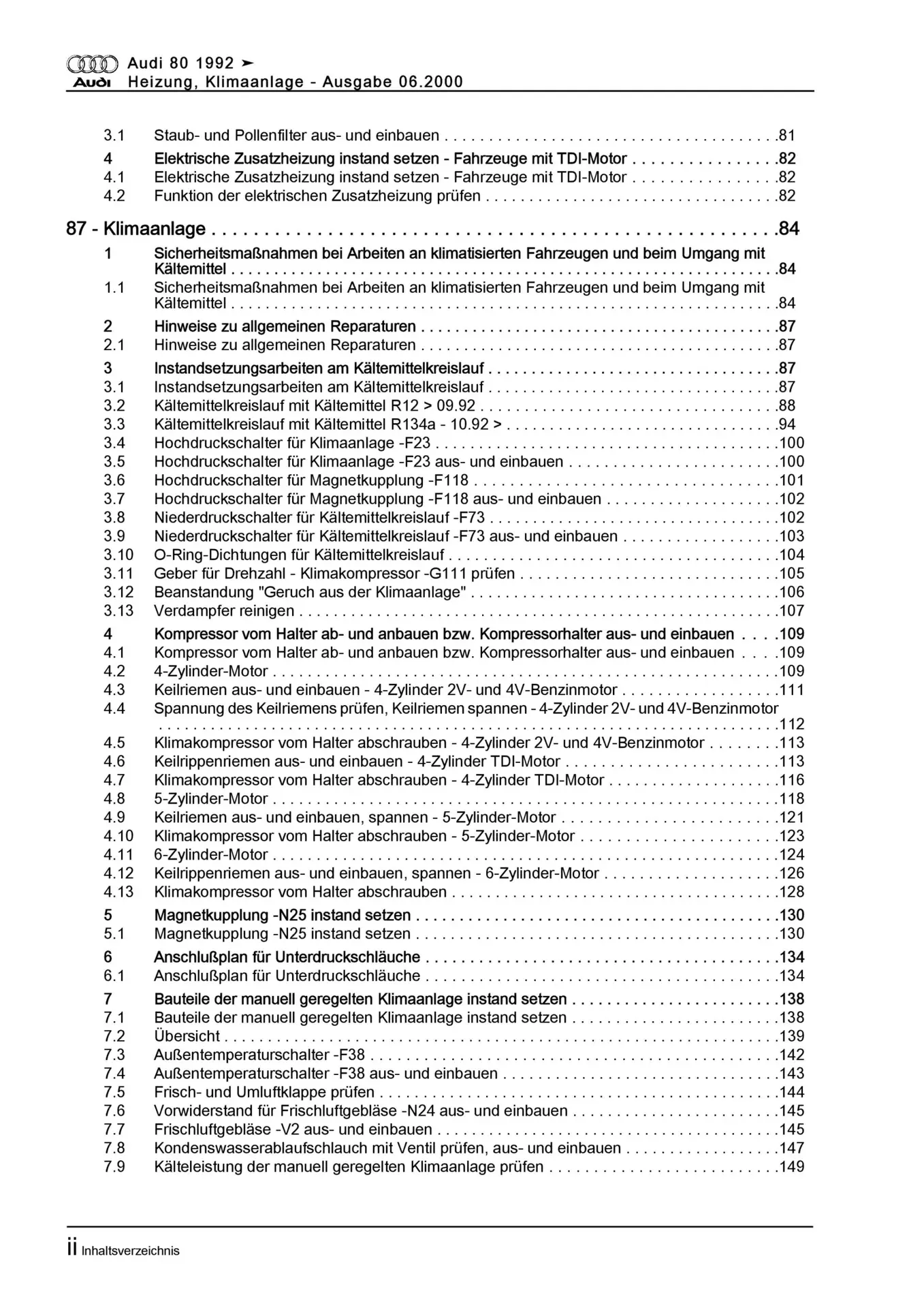 Diese Reparaturanleitung enthält detaillierte Beschreibungen zu Aus- und Einbauarbeiten, Einstell- und Prüfarbeiten sowie zahlreiche Grafiken, Bilder und Explosionszeichnungen. Die Kunststoffringbindung ermöglicht ein problemloses Umschlagen bis zu 180°.