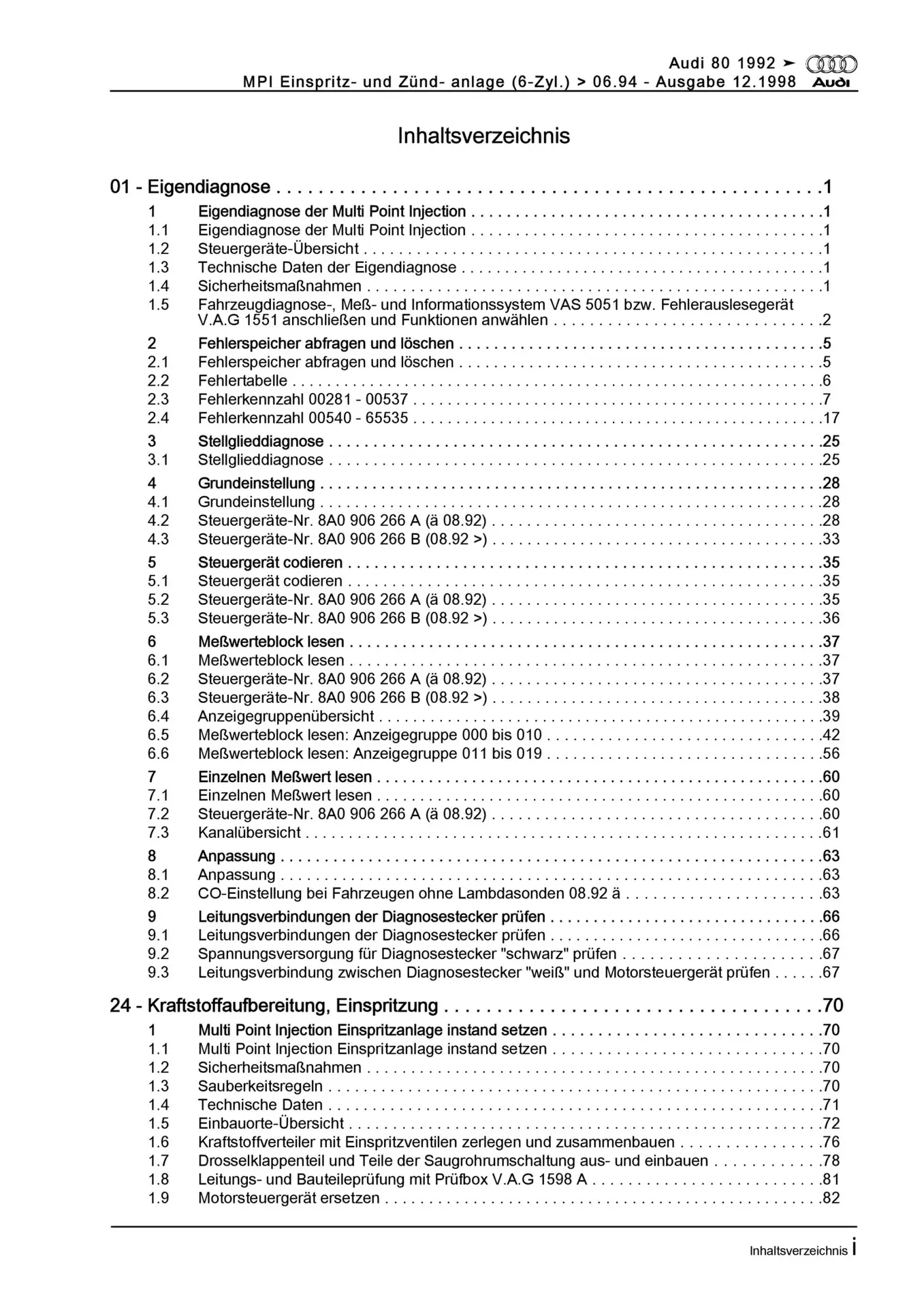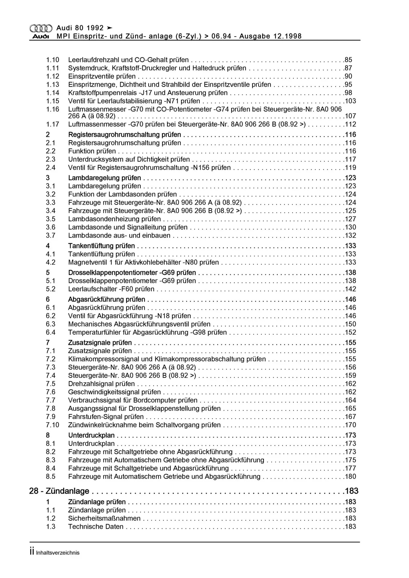 Diese Reparaturanleitung enthält detaillierte Beschreibungen zu Aus- und Einbauarbeiten, Einstell- und Prüfarbeiten sowie zahlreiche Grafiken, Bilder und Explosionszeichnungen. Die Kunststoffringbindung ermöglicht ein problemloses Umschlagen bis zu 180°.