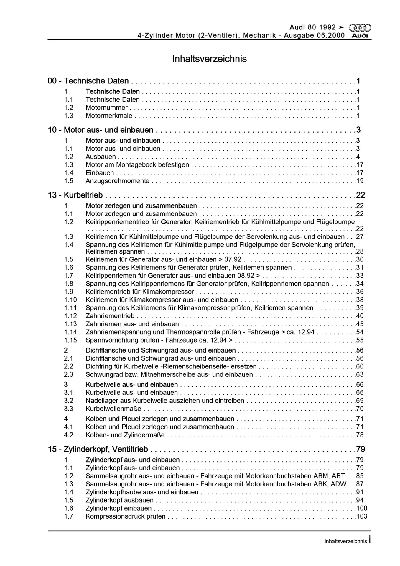 Audi 80 Typ 8C (91-95) 4-Zyl. Benzinmotor Mechanik 71-115 PS Reparaturanleitung