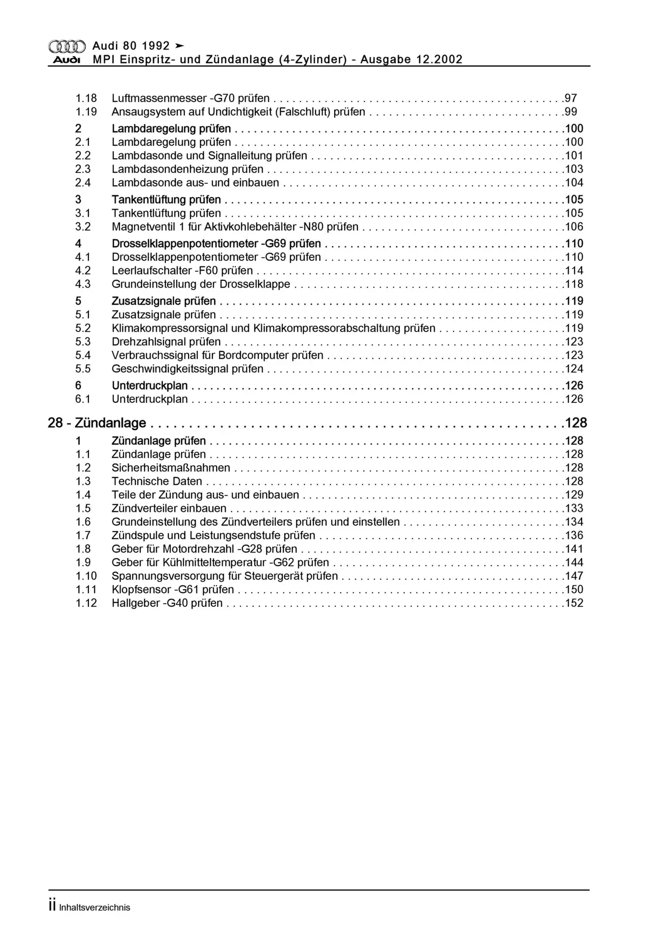 Diese Reparaturanleitung enthält detaillierte Beschreibungen zu Aus- und Einbauarbeiten, Einstell- und Prüfarbeiten sowie zahlreiche Grafiken, Bilder und Explosionszeichnungen. Die Kunststoffringbindung ermöglicht ein problemloses Umschlagen bis zu 180°.