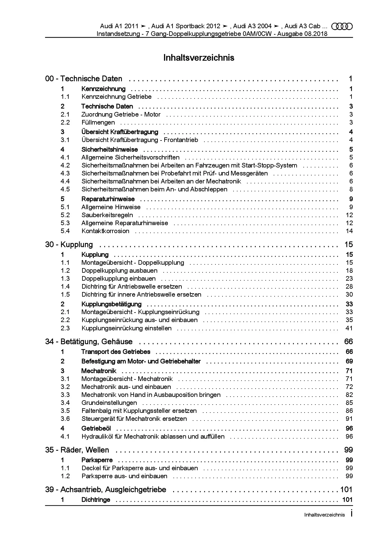 Diese Reparaturanleitung enthält detaillierte Beschreibungen zu Aus- und Einbauarbeiten, Einstell- und Prüfarbeiten sowie zahlreiche Grafiken, Bilder und Explosionszeichnungen. Die Kunststoffringbindung ermöglicht ein problemloses Umschlagen bis zu 180°.