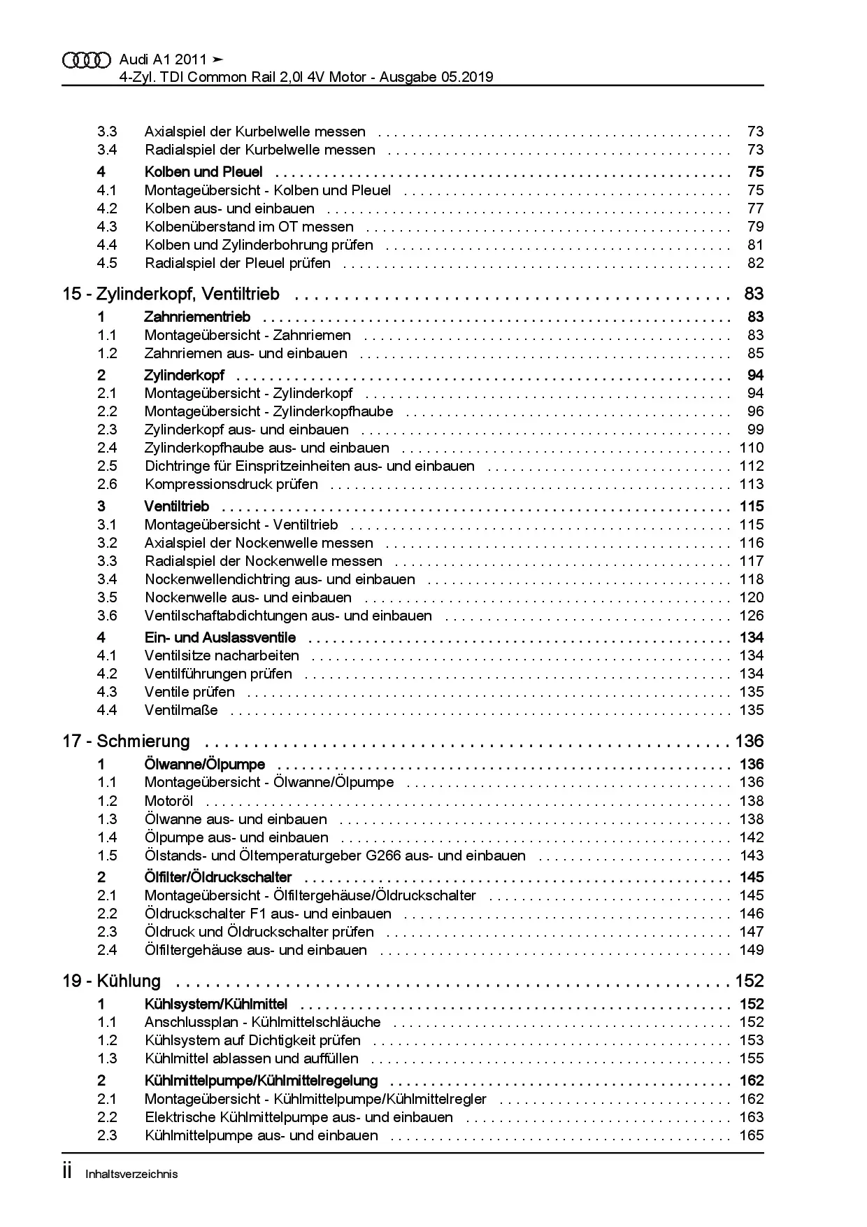 Diese Reparaturanleitung enthält detaillierte Beschreibungen zu Aus- und Einbauarbeiten, Einstell- und Prüfarbeiten sowie zahlreiche Grafiken, Bilder und Explosionszeichnungen. Die Kunststoffringbindung ermöglicht ein problemloses Umschlagen bis zu 180°.
