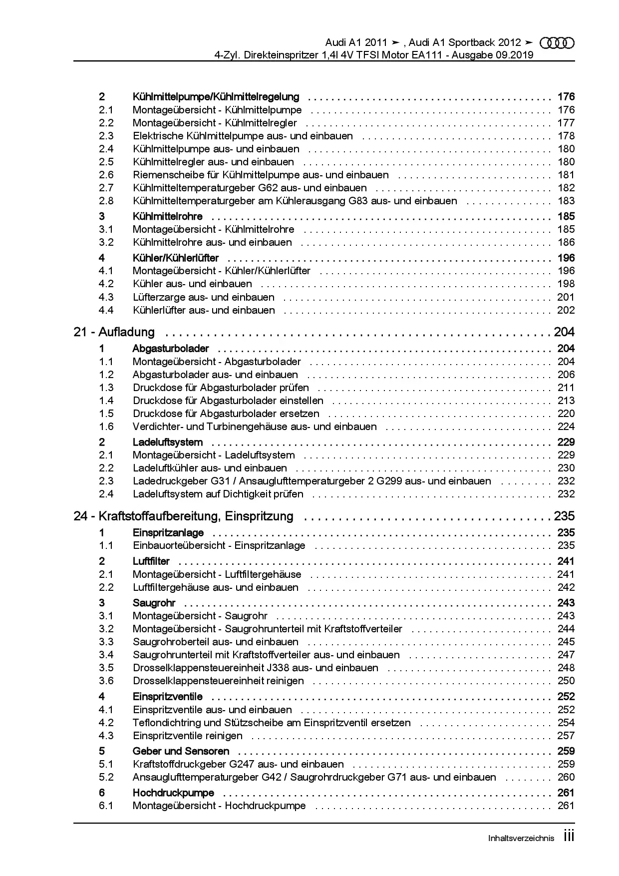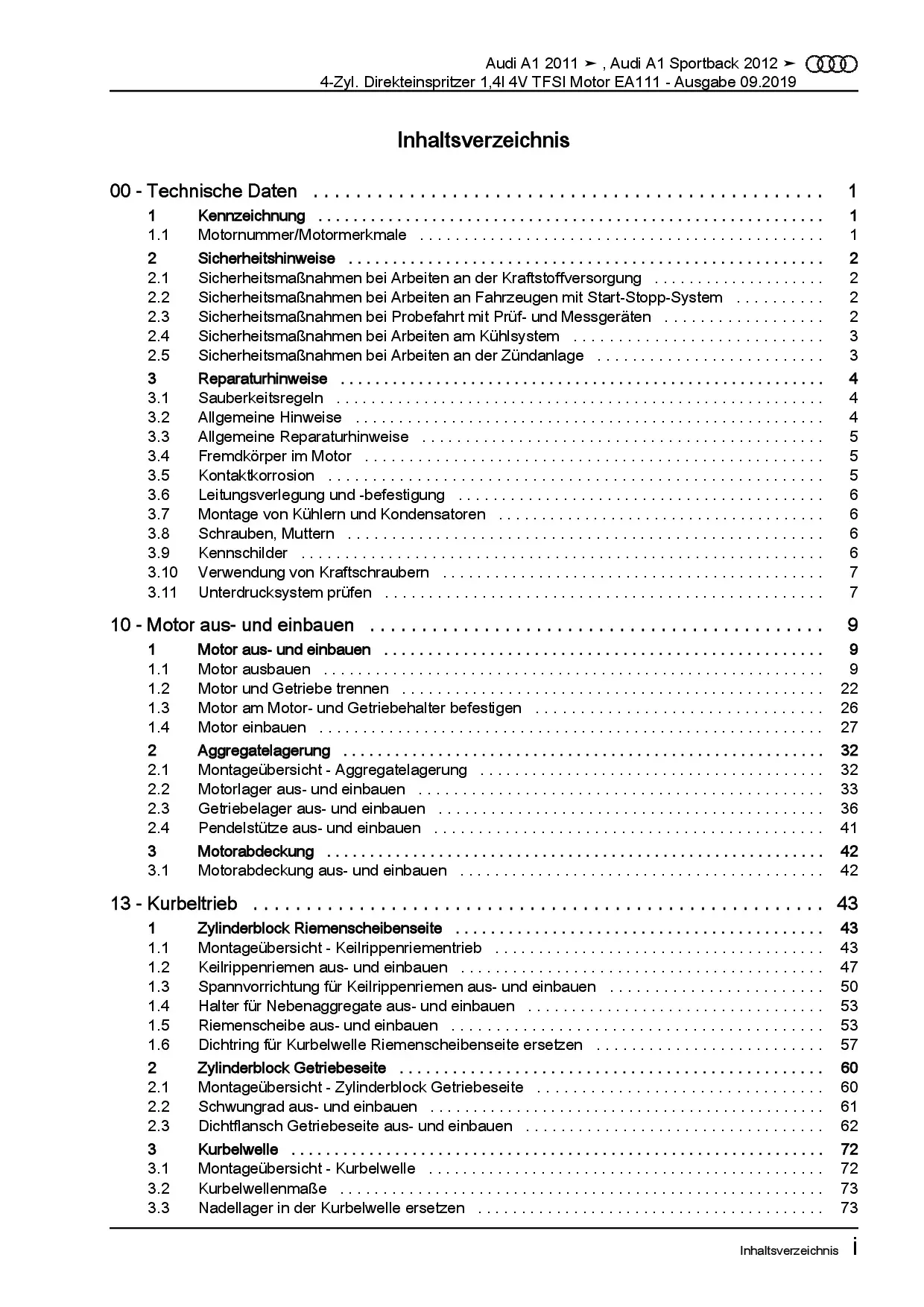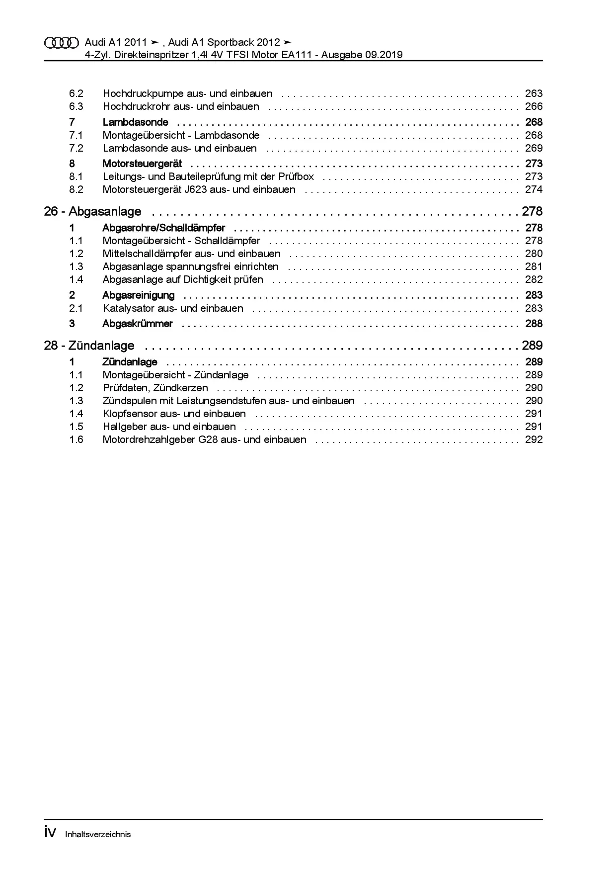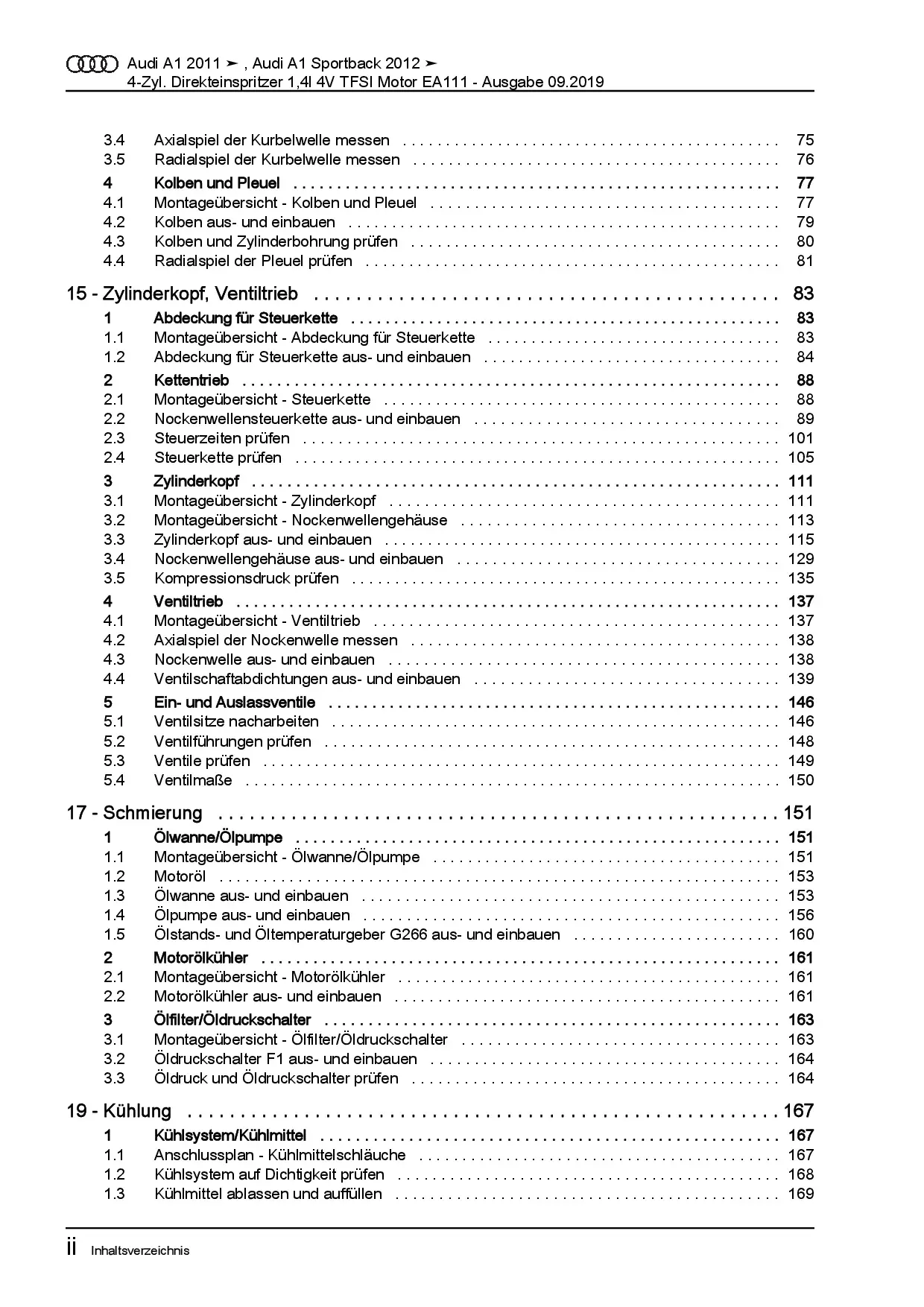 Audi A1 Typ 8X 2010-2018 4-Zyl. 1,4l Benzinmotor 122 PS TFSI Reparaturanleitung