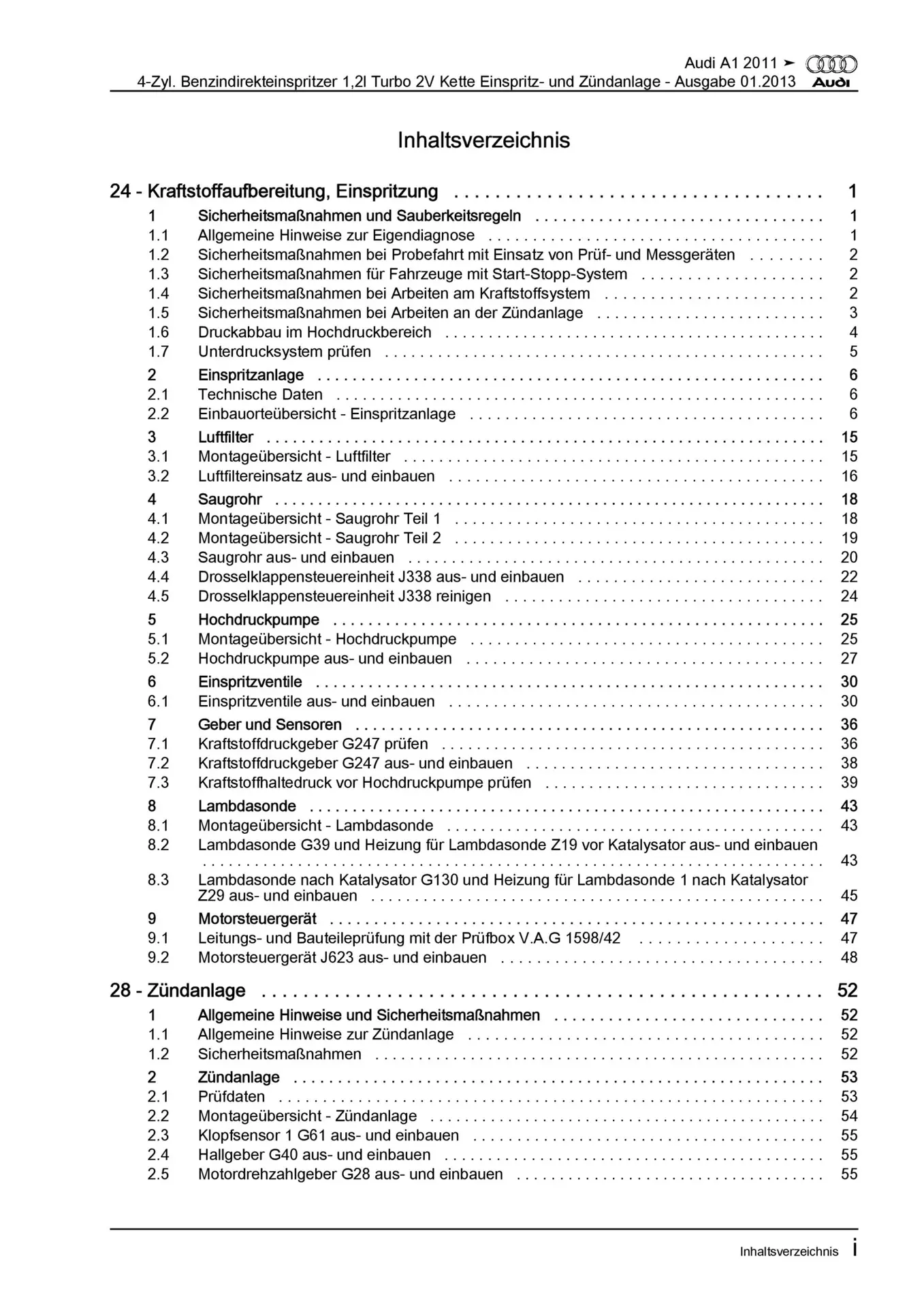 Audi A1 Typ 8X 2010-2018 Benzin Einspritz- Zündanlage 86 PS Reparaturanleitung