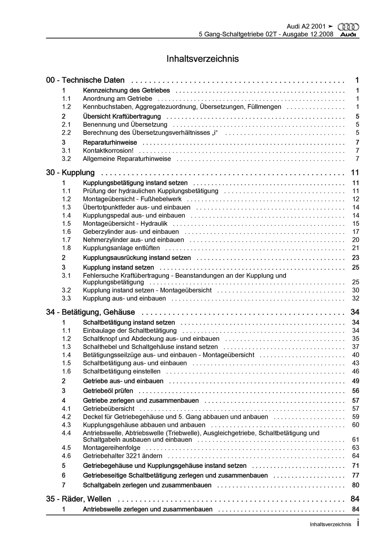 Audi A2 Typ 8Z 1999-2005 5 Gang Schaltgetriebe 02T Kupplung Reparaturanleitung
