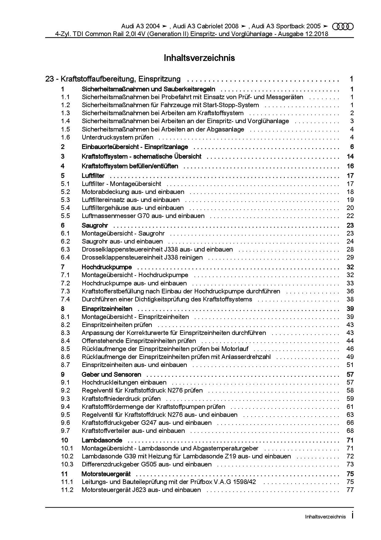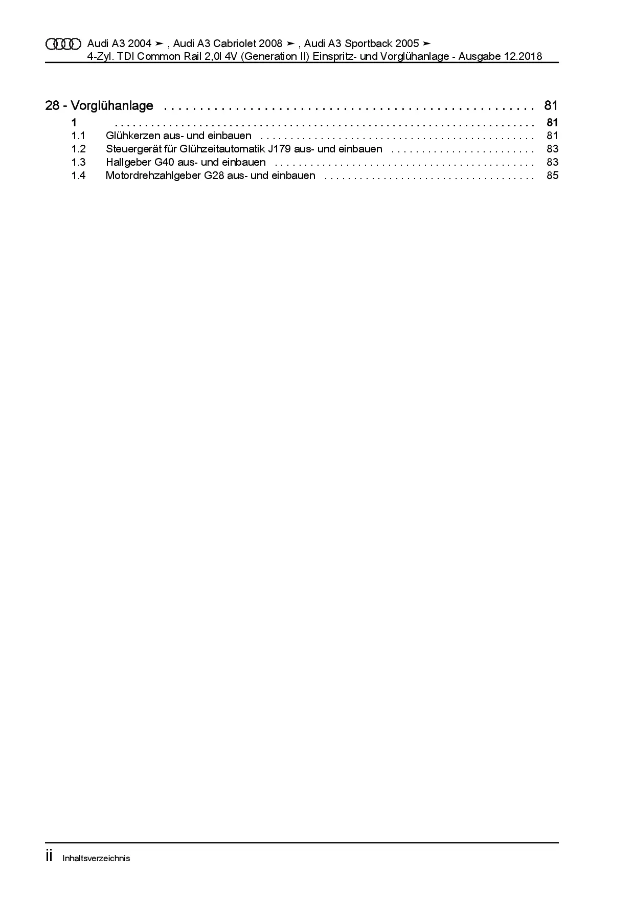 Audi A3 8P (03-12) Diesel Einspritz/Vorglühanlage 136-170 PS Reparaturanleitung