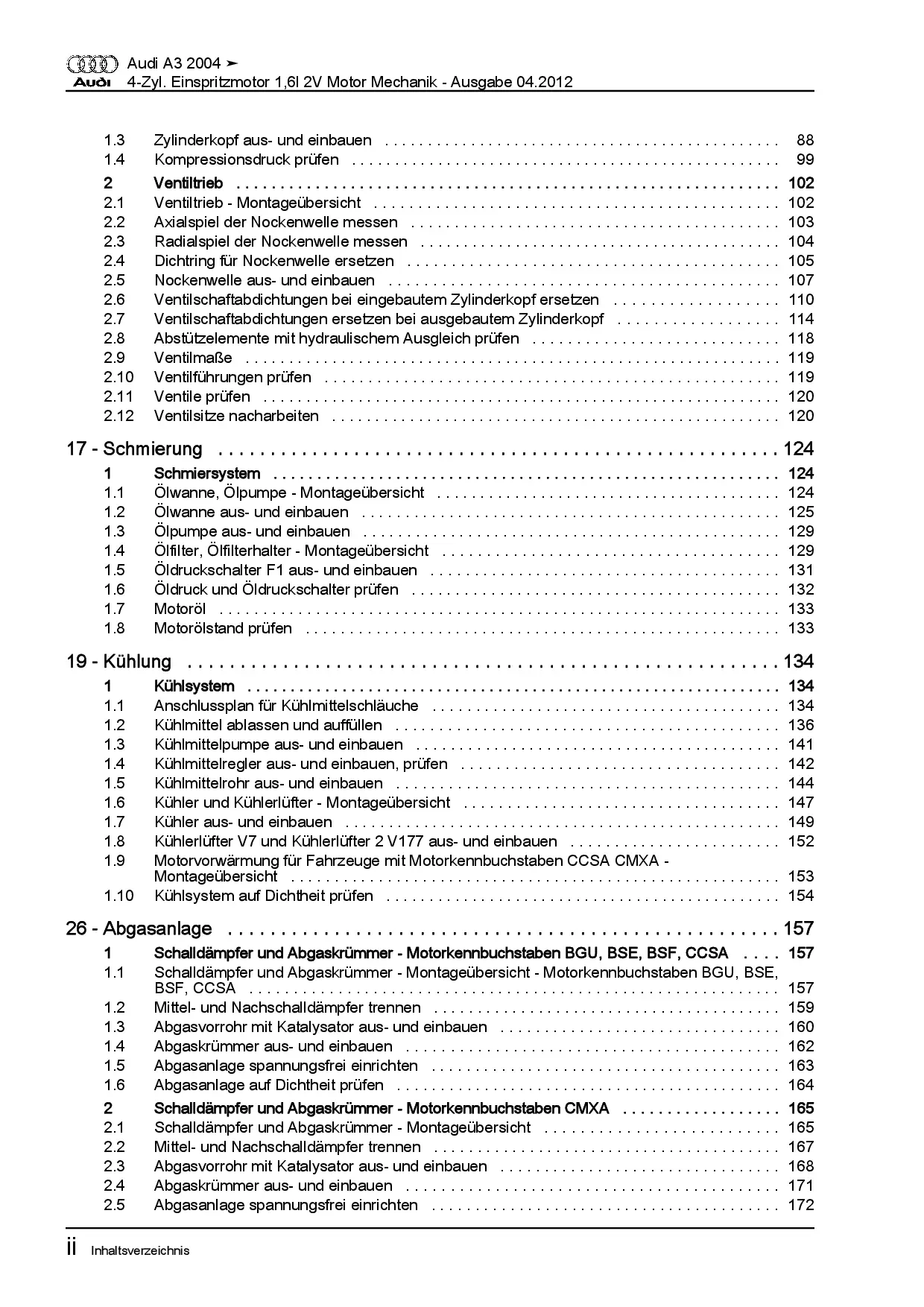 Diese Reparaturanleitung enthält detaillierte Beschreibungen zu Aus- und Einbauarbeiten, Einstell- und Prüfarbeiten sowie zahlreiche Grafiken, Bilder und Explosionszeichnungen. Die Kunststoffringbindung ermöglicht ein problemloses Umschlagen bis zu 180°.