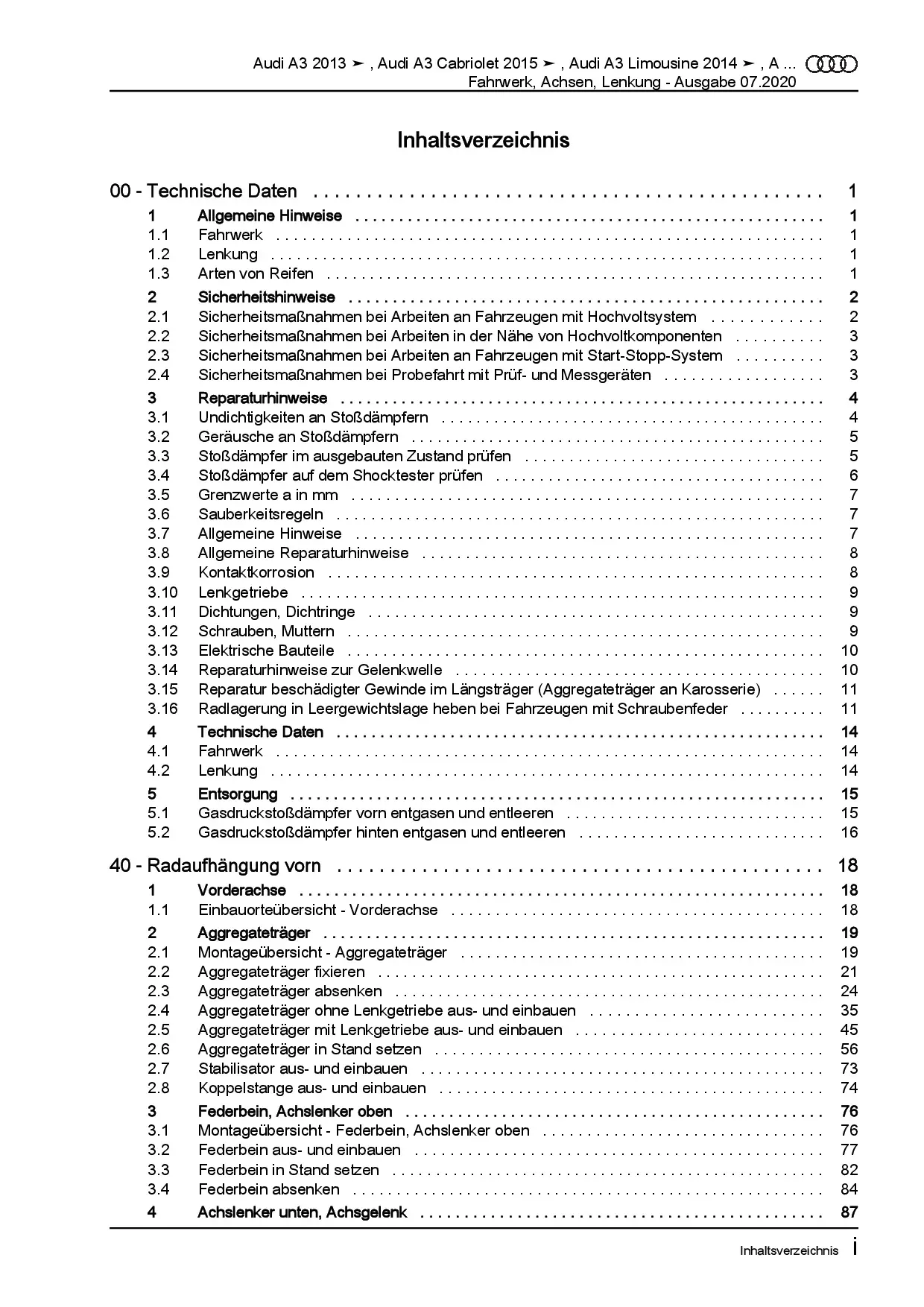 Der Audi A3 Cabriolet Reparaturleitfaden ist ein lizenzierter Nachdruck der originalen Werkstattunterlagen. Diese Anleitung wird von Vertragswerkstätten verwendet und enthält alle technischen Informationen für fachgerechte Reparaturen.
