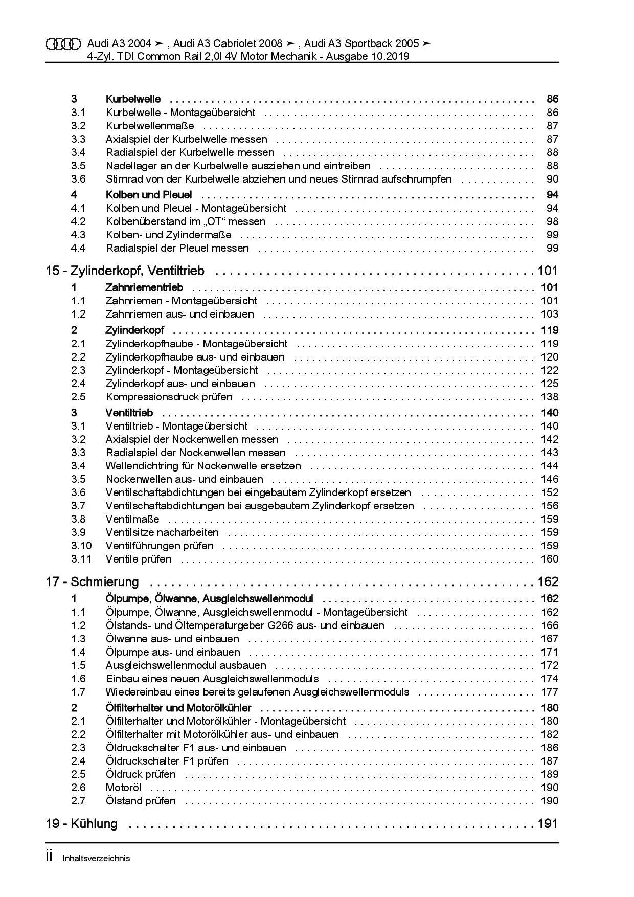 Diese Reparaturanleitung enthält detaillierte Beschreibungen zu Aus- und Einbauarbeiten, Einstell- und Prüfarbeiten sowie zahlreiche Grafiken, Bilder und Explosionszeichnungen. Die Kunststoffringbindung ermöglicht ein problemloses Umschlagen bis zu 180°.