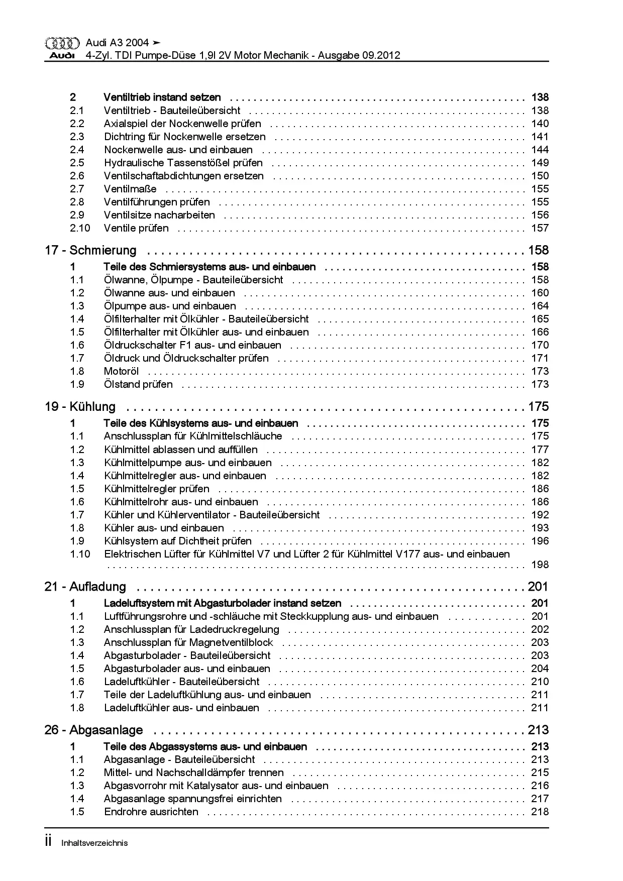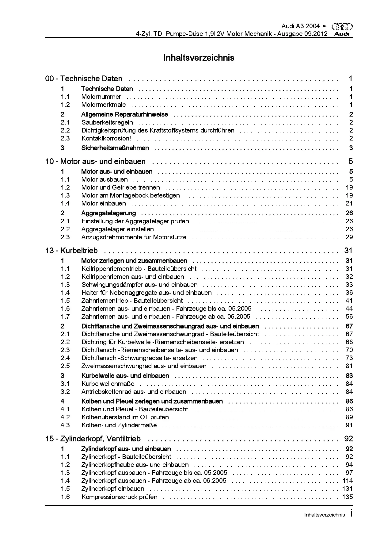 Audi A3 Typ 8P 2003-2012 4-Zyl. 1,9l Dieselmotor TDI 105 PS Reparaturanleitung