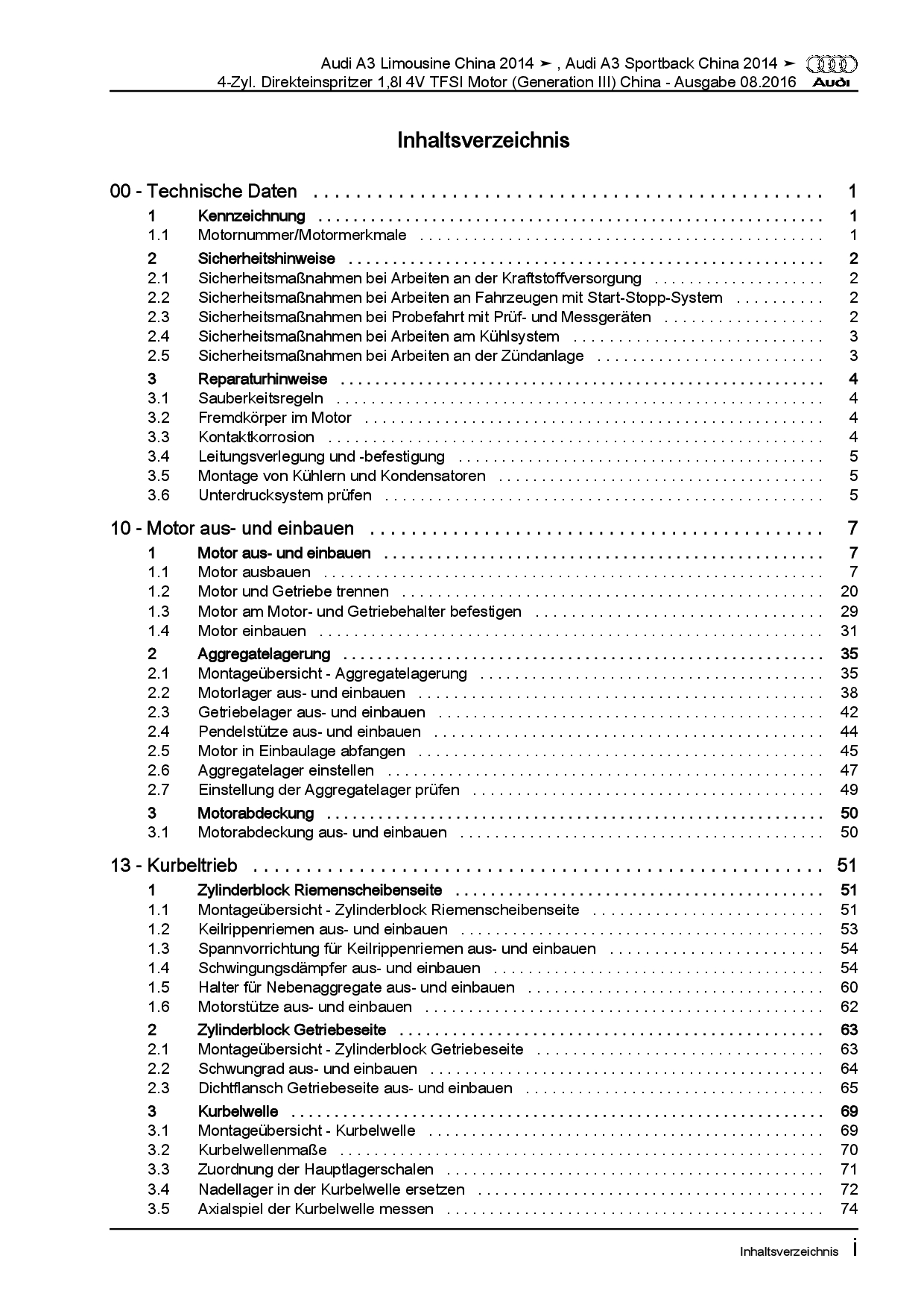 Offizieller Audi A3 Limousine und Sportback Reparaturleitfaden