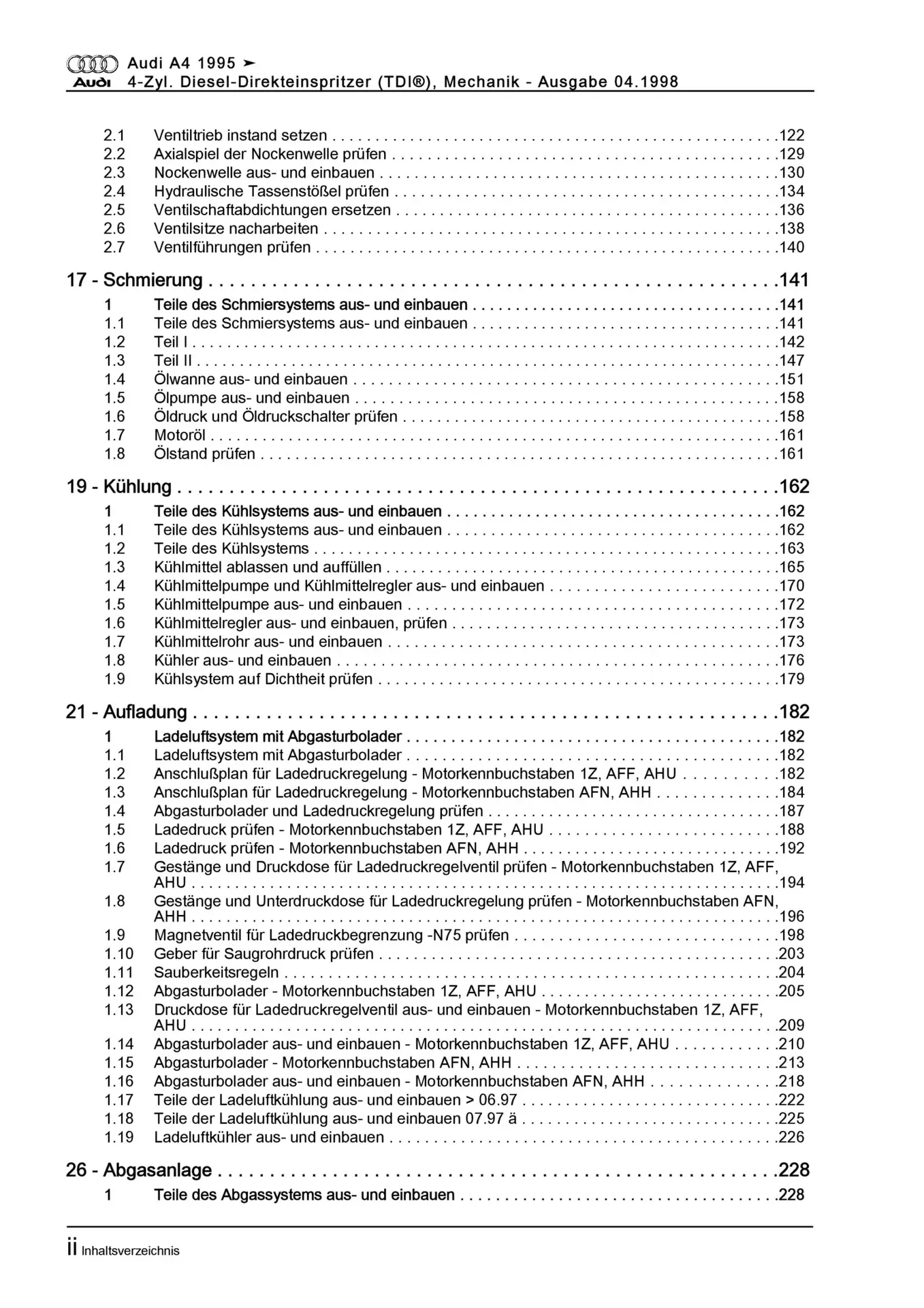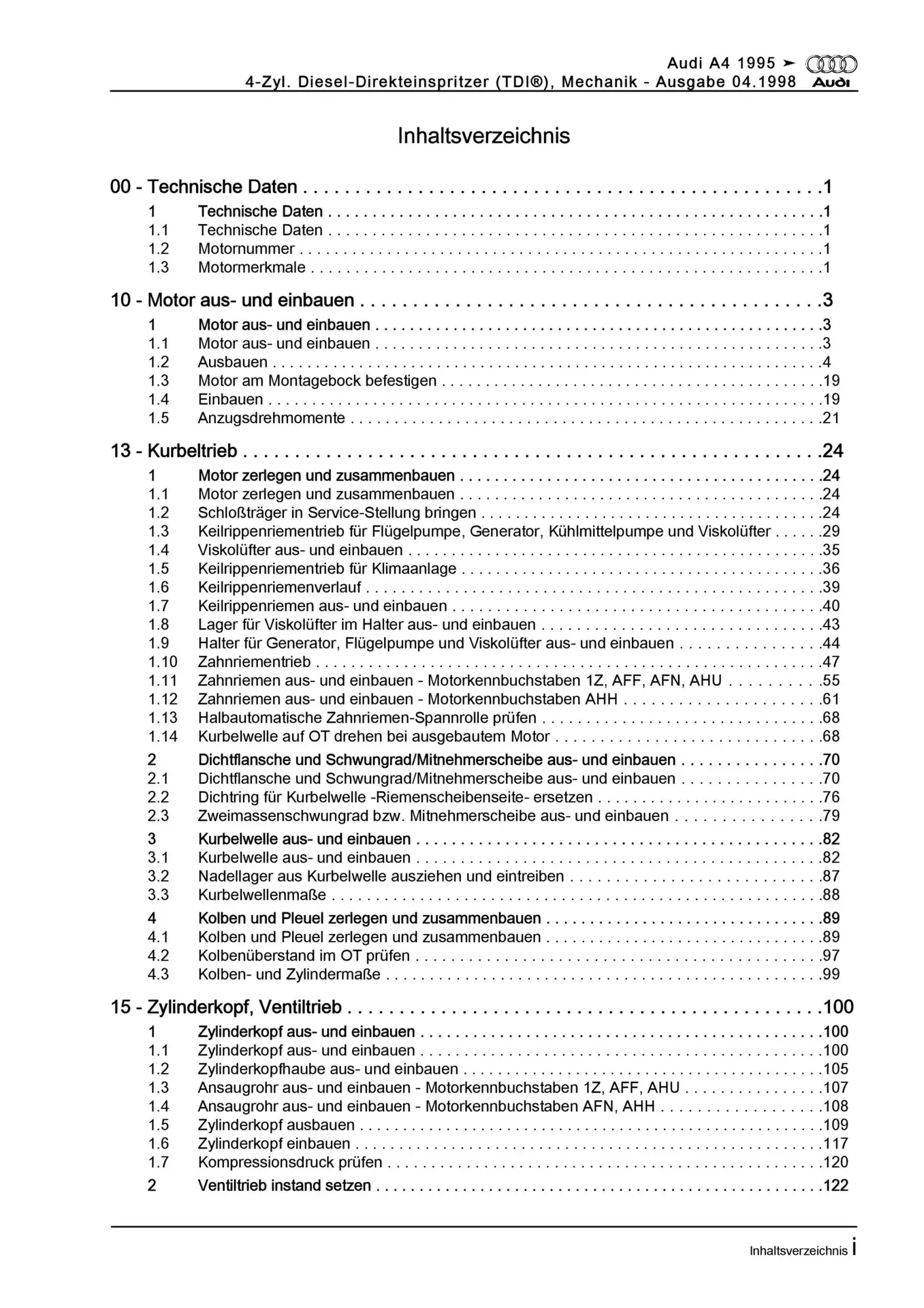 Audi A4 8D (94-02) 1,9l Dieselmotor 75-110 PS TDI Mechanik Reparaturanleitung