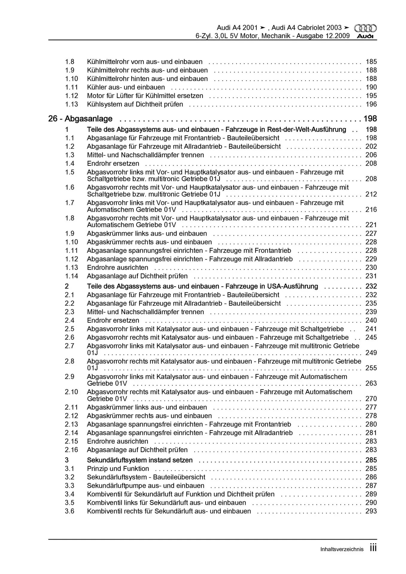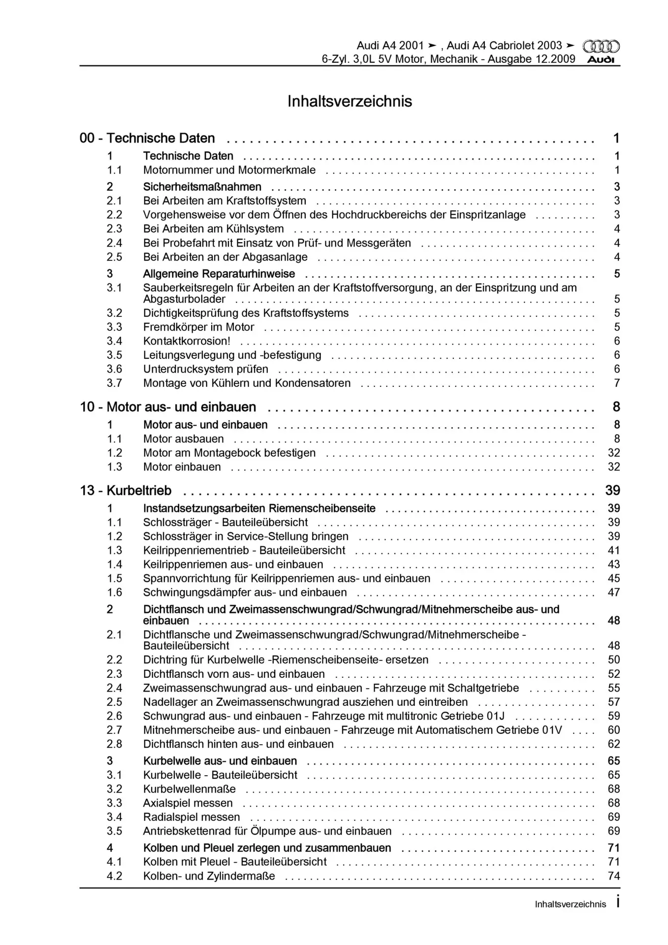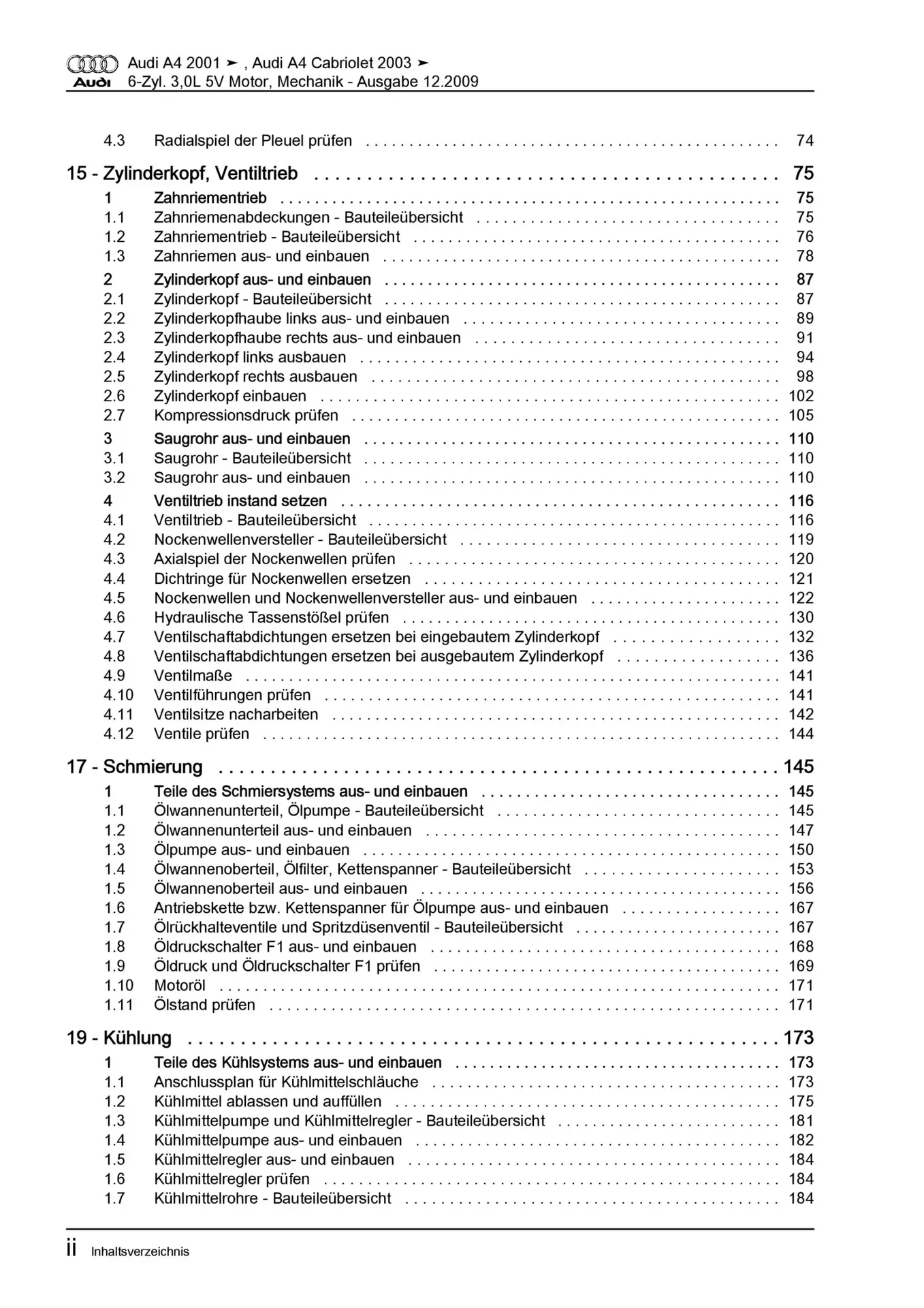Audi A4 8E 2000-2008 6-Zyl. Benzinmotor Mechanik 216-220 PS Reparaturanleitung