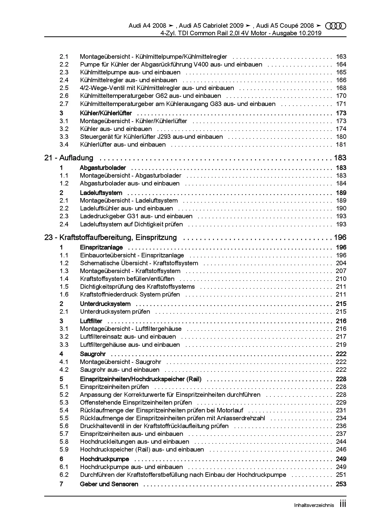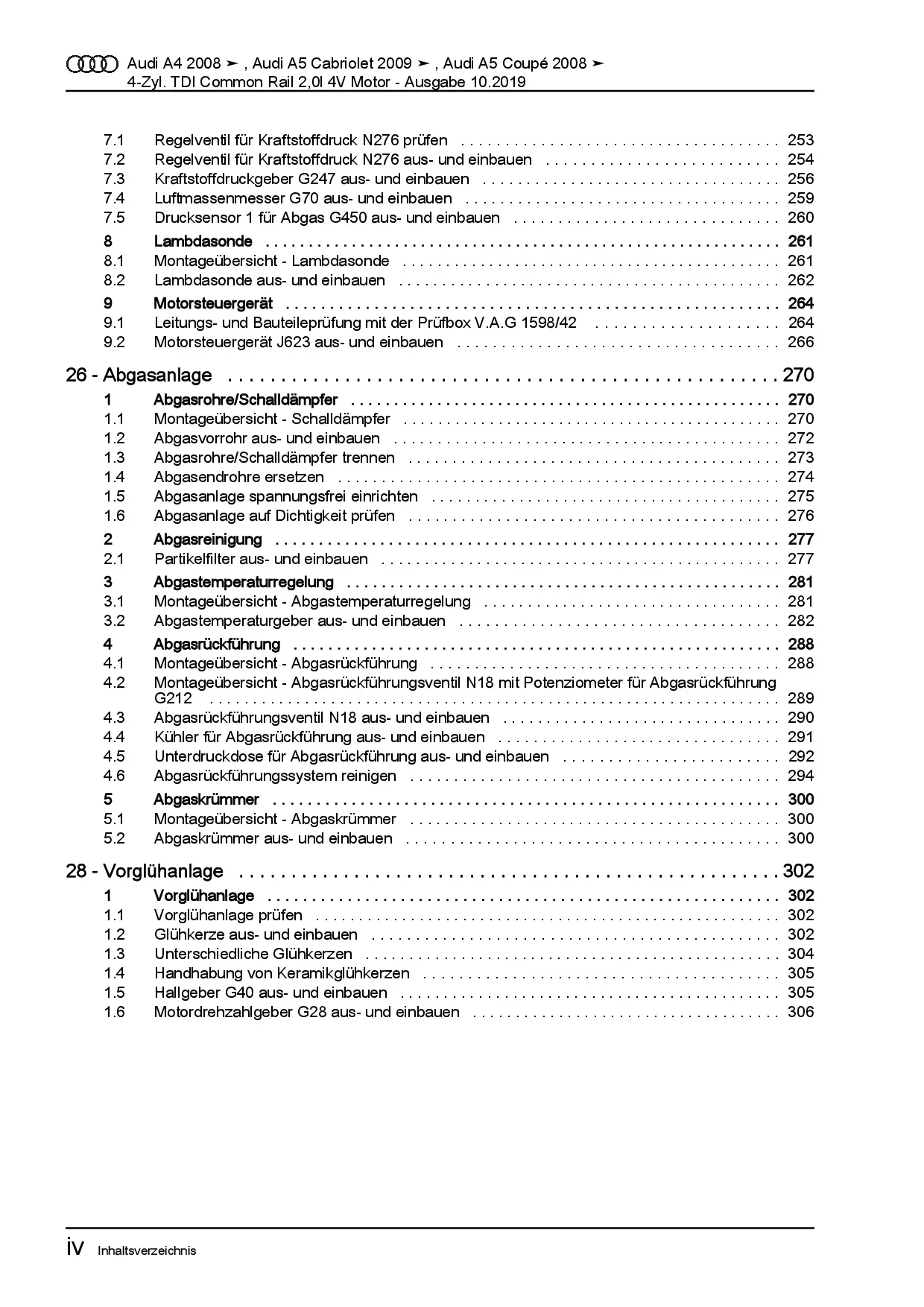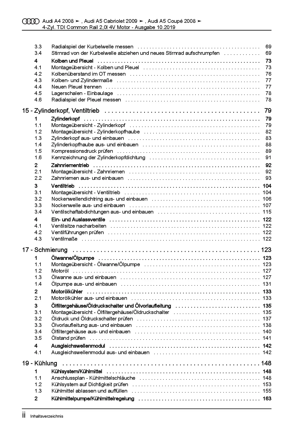 Diese Reparaturanleitung enthält detaillierte Beschreibungen zu Aus- und Einbauarbeiten, Einstell- und Prüfarbeiten sowie zahlreiche Grafiken, Bilder und Explosionszeichnungen. Die Kunststoffringbindung ermöglicht ein problemloses Umschlagen bis zu 180°.