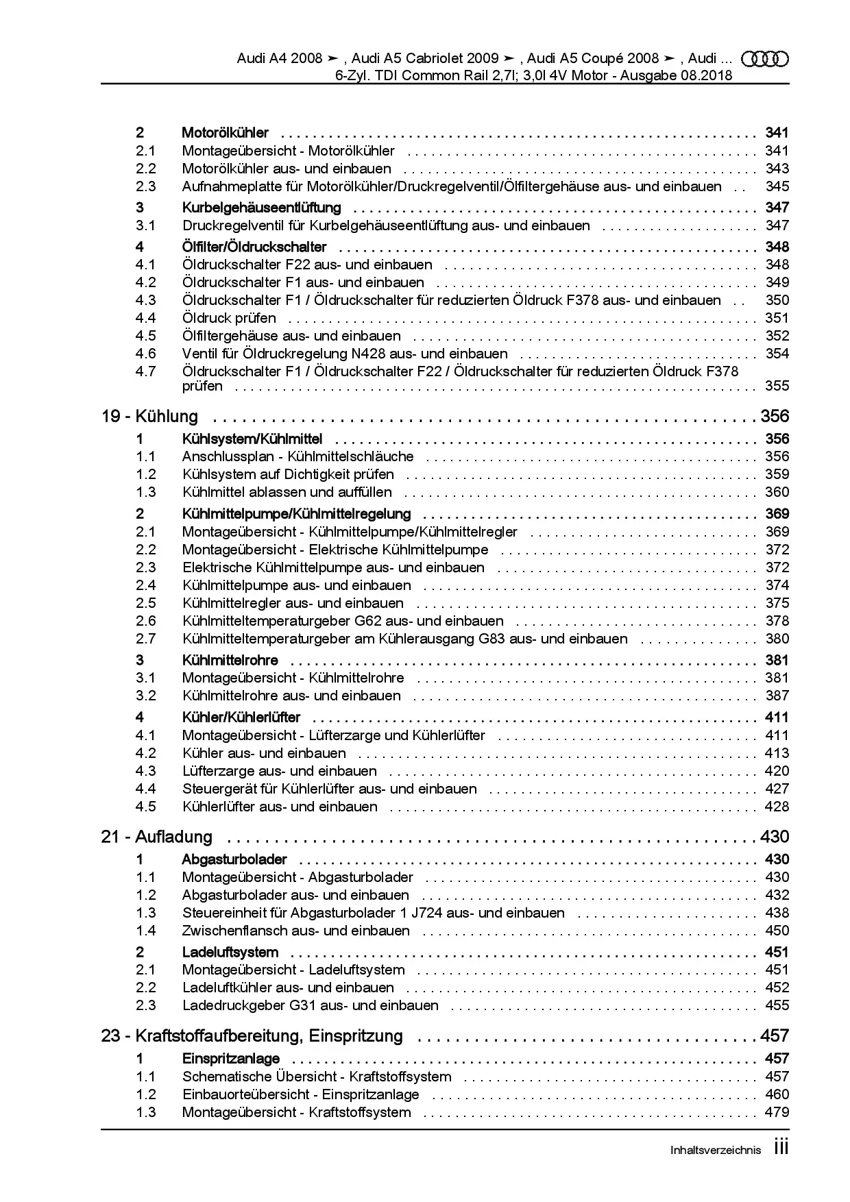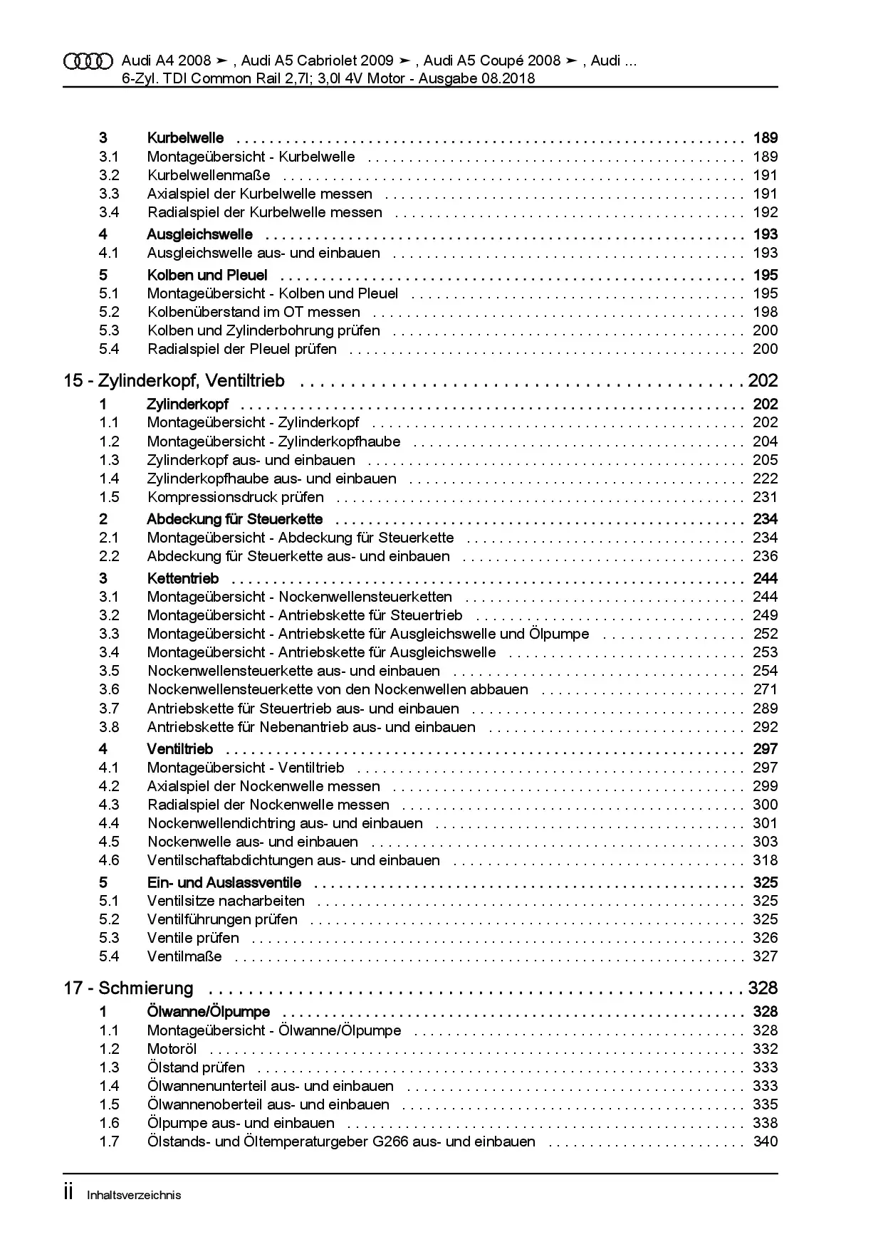 Diese Reparaturanleitung enthält detaillierte Beschreibungen zu Aus- und Einbauarbeiten, Einstell- und Prüfarbeiten sowie zahlreiche Grafiken, Bilder und Explosionszeichnungen. Die Kunststoffringbindung ermöglicht ein problemloses Umschlagen bis zu 180°.