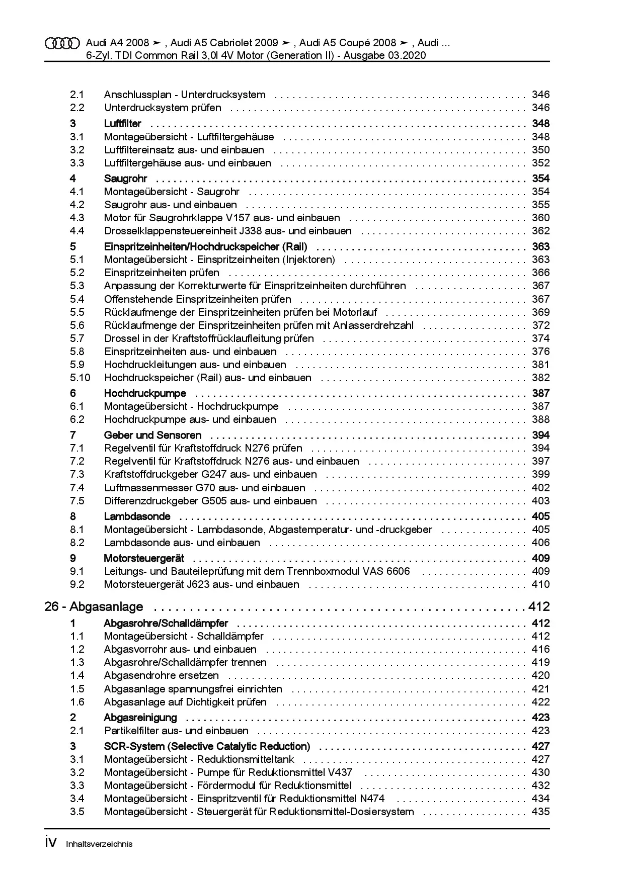 Diese Reparaturanleitung enthält detaillierte Beschreibungen zu Aus- und Einbauarbeiten, Einstell- und Prüfarbeiten sowie zahlreiche Grafiken, Bilder und Explosionszeichnungen. Die Kunststoffringbindung ermöglicht ein problemloses Umschlagen bis zu 180°.