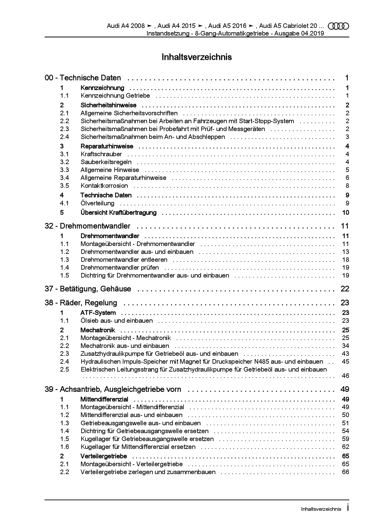 Audi A4 8W ab 2015 Instandsetzung 8 Gang Automatikgetriebe Reparaturanleitung