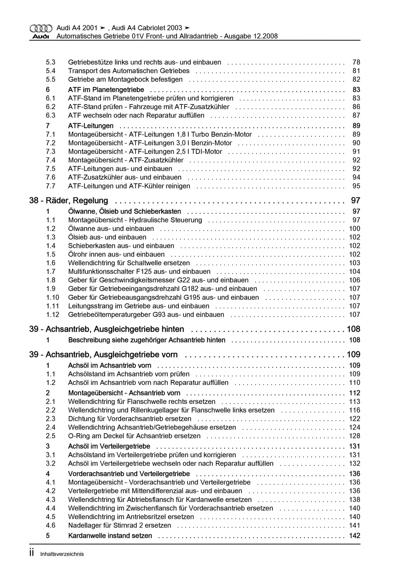 Der Audi A4 Cabriolet Reparaturleitfaden ist ein lizenzierter Nachdruck der originalen Werkstattunterlagen. Diese Anleitung wird von Vertragswerkstätten verwendet und enthält alle technischen Informationen für fachgerechte Reparaturen.