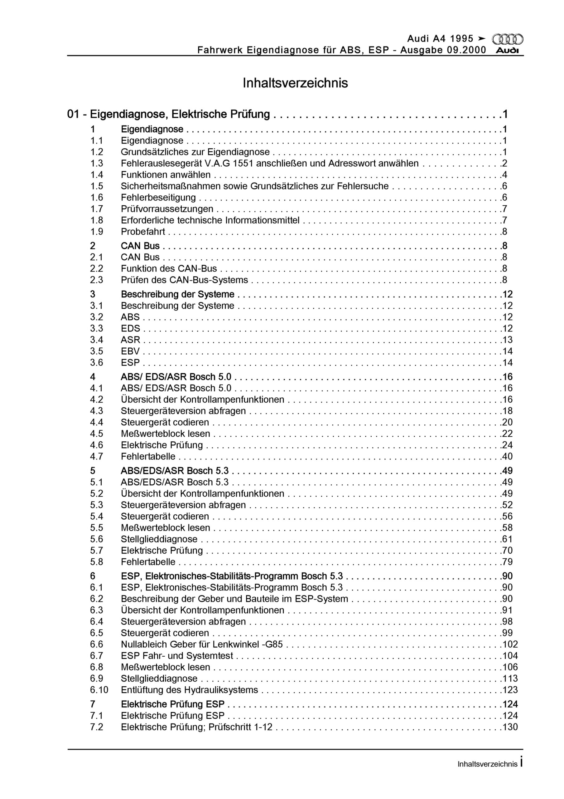 Audi A4 Typ 8D 1994-2002 Eigendiagnose Fahrwerk Bremsen Reparaturanleitung