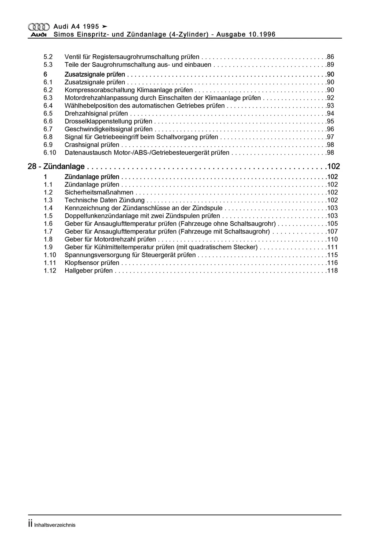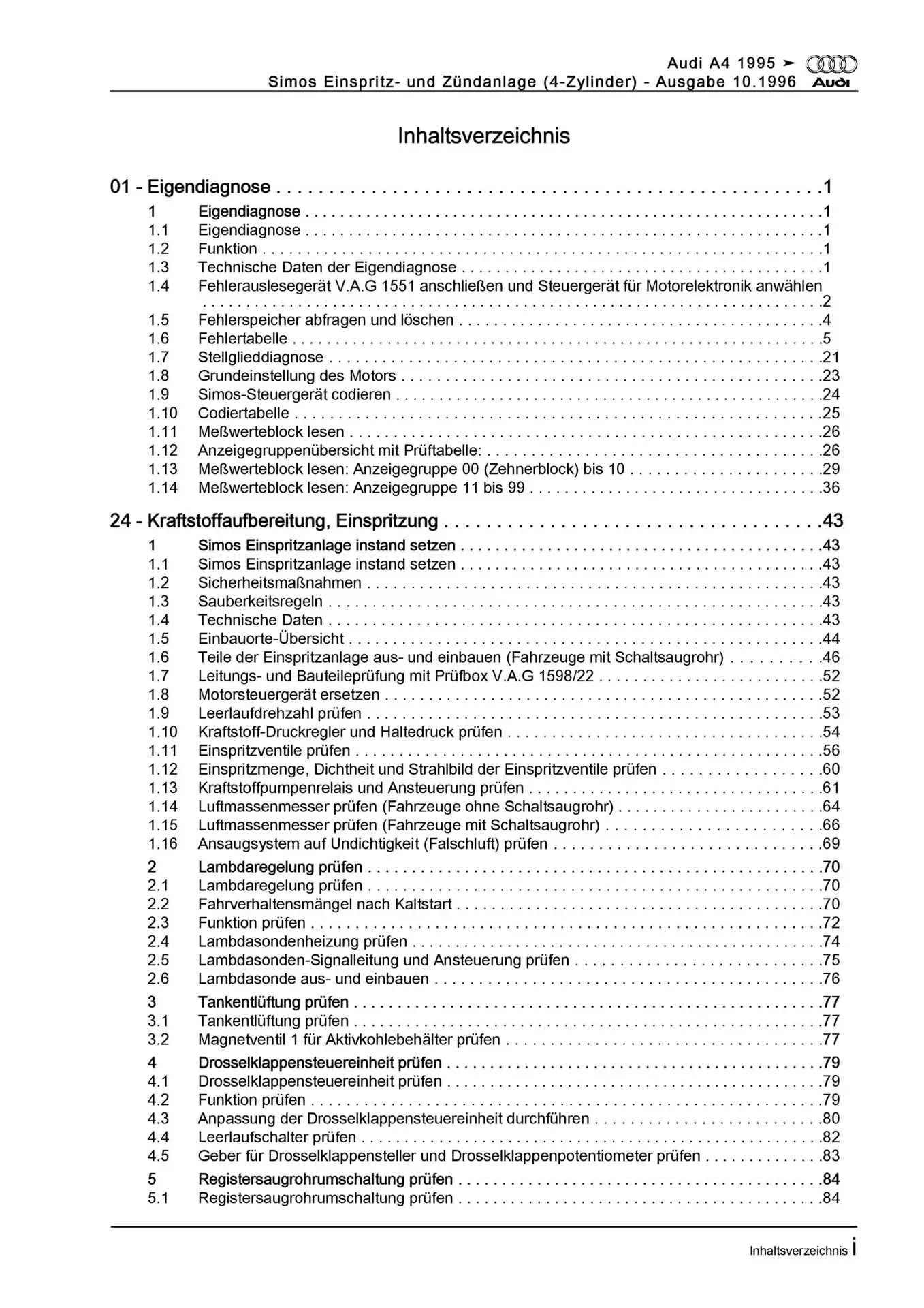 Audi A4 Typ 8D 1994-2002 Simos Einspritz- Zündanlage 100 PS Reparaturanleitung