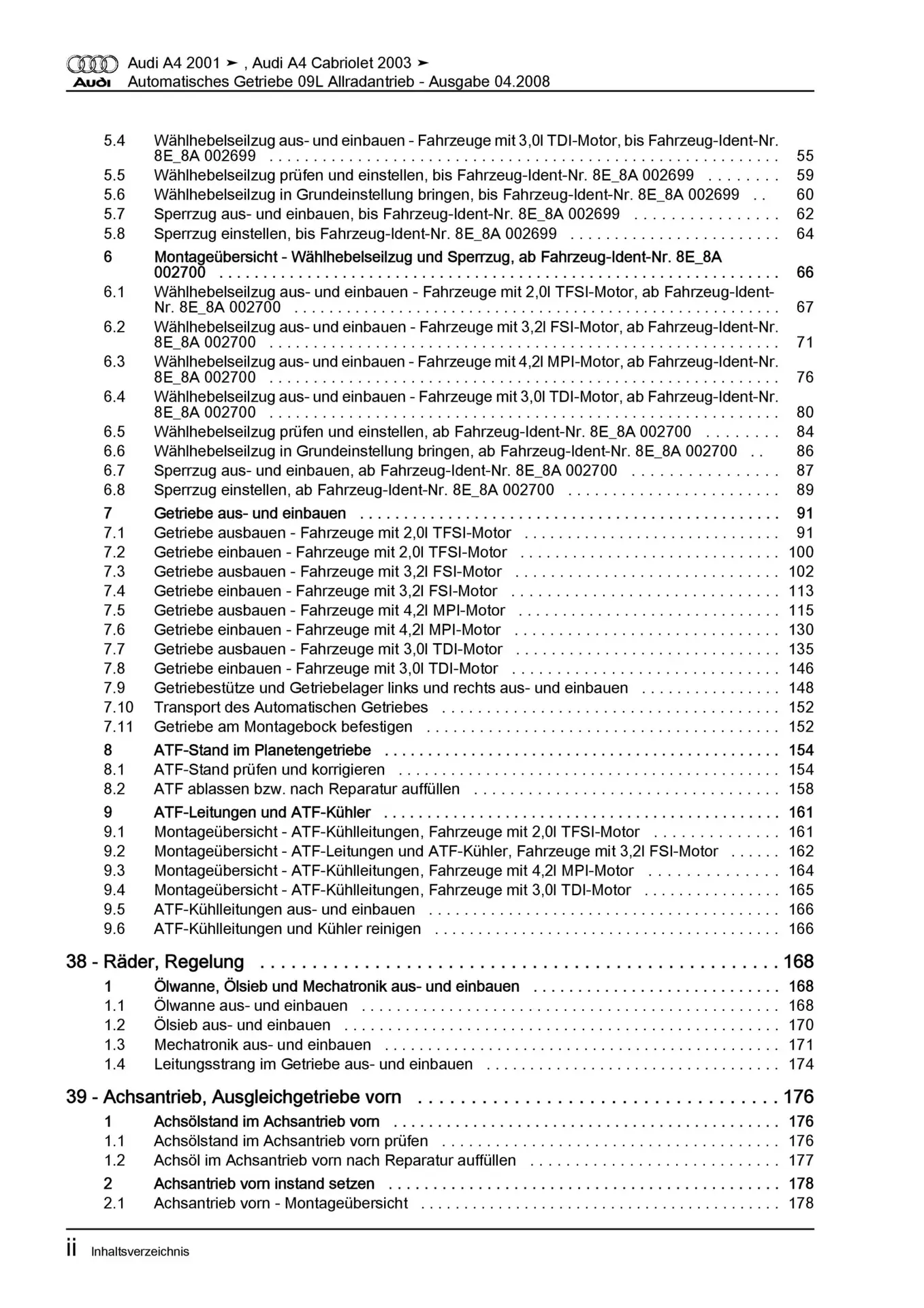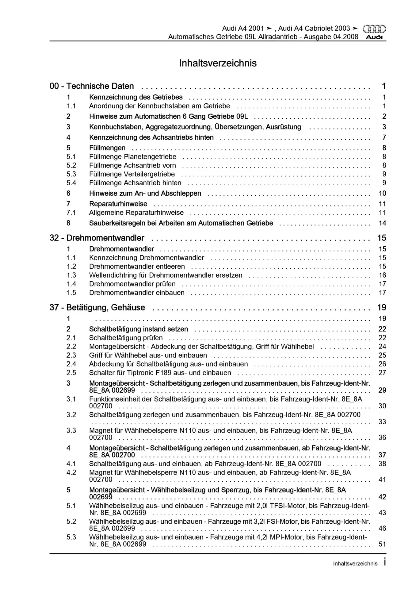 Audi A4 Typ 8E 2000-2008 6 Gang Automatikgetriebe 09L Reparaturanleitung