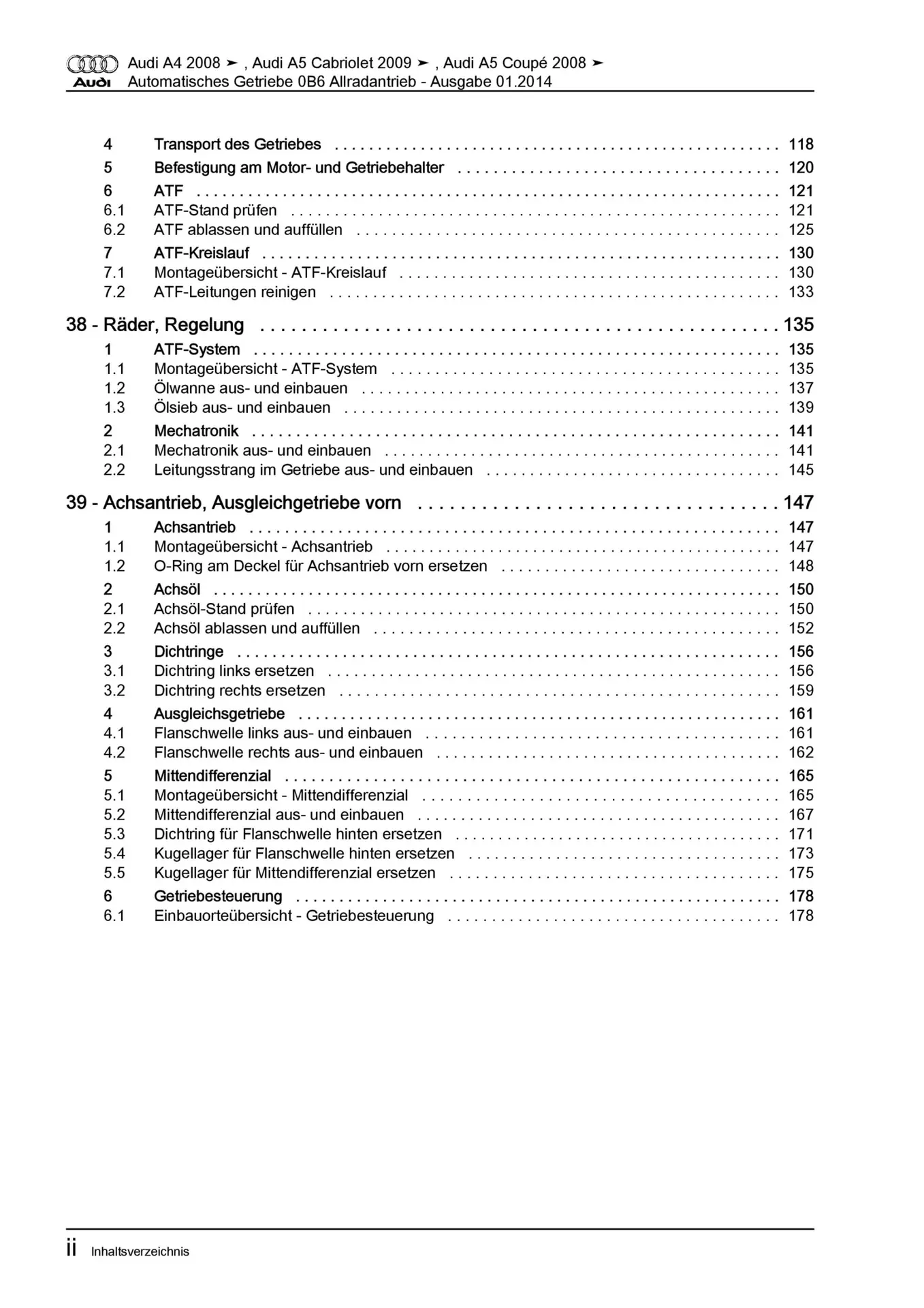 Audi A4 Typ 8K 2007-2015 6 Gang Automatikgetriebe 0B6 Reparaturanleitung