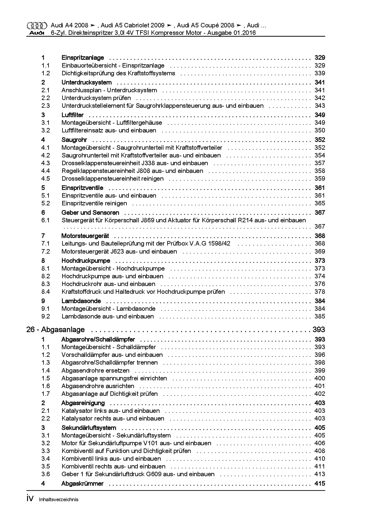 Diese Reparaturanleitung enthält detaillierte Beschreibungen zu Aus- und Einbauarbeiten, Einstell- und Prüfarbeiten sowie zahlreiche Grafiken, Bilder und Explosionszeichnungen. Die Kunststoffringbindung ermöglicht ein problemloses Umschlagen bis zu 180°.