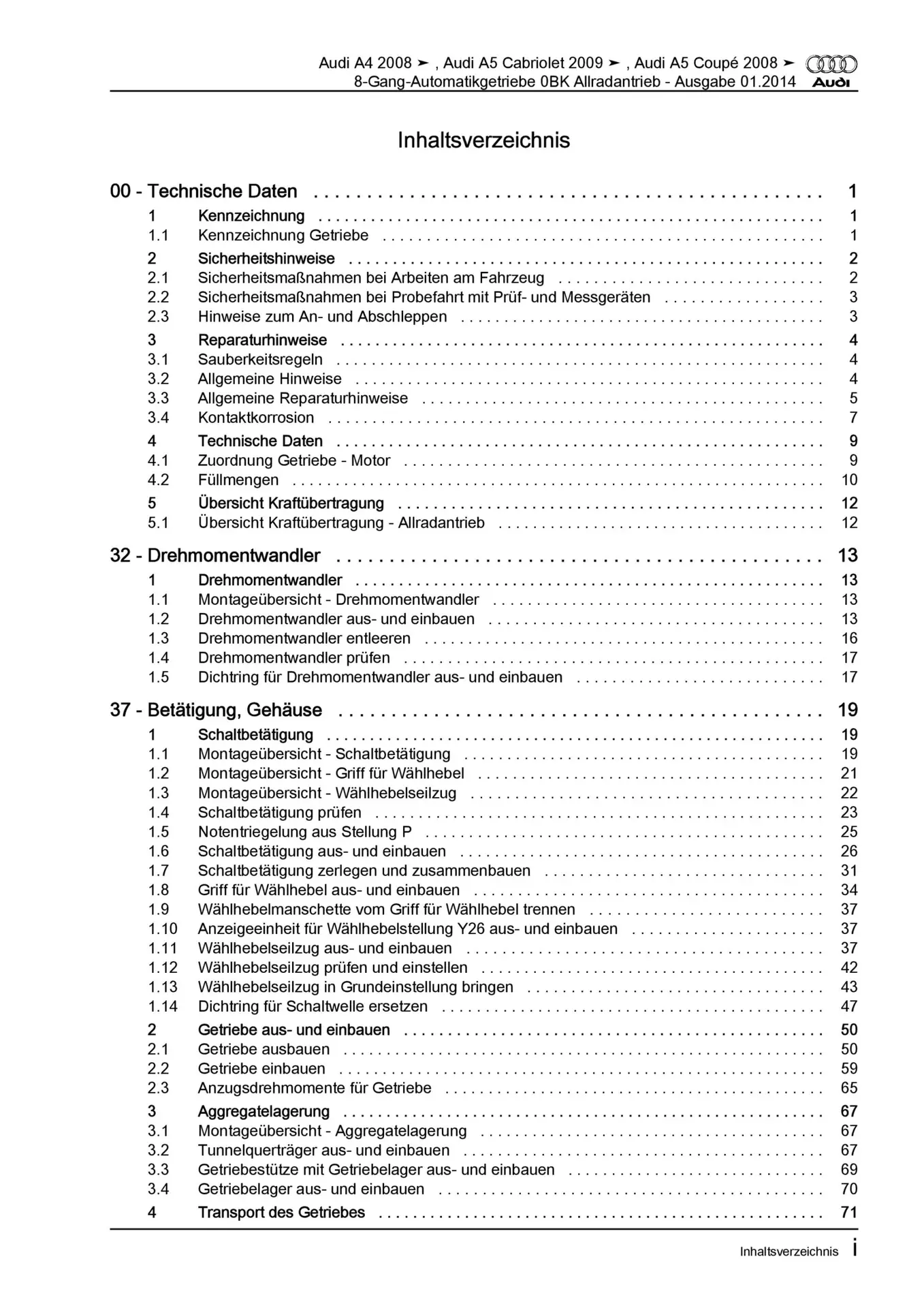 Audi A4 Typ 8K 2007-2015 8 Gang Automatikgetriebe 0BK Reparaturanleitung