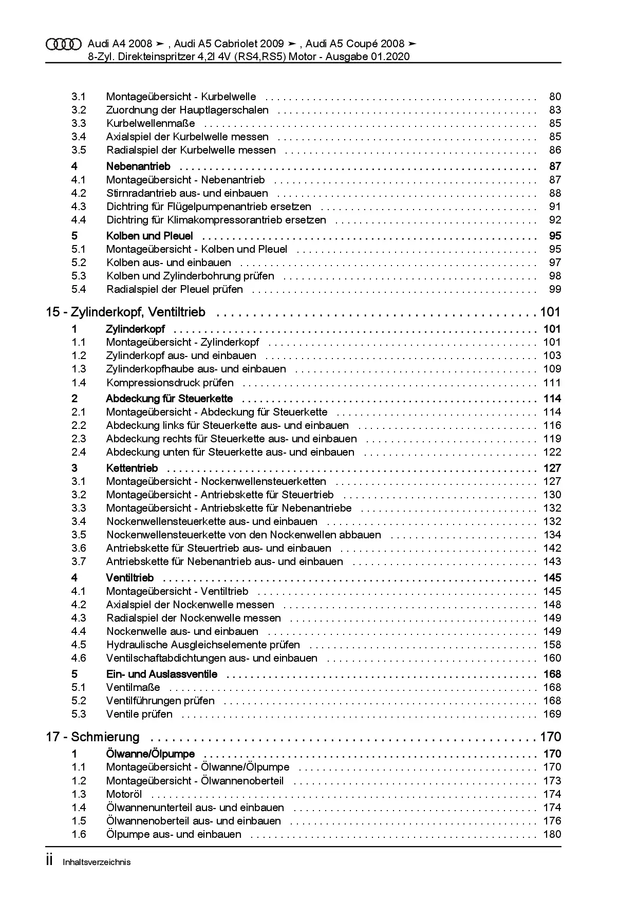 Diese Reparaturanleitung enthält detaillierte Beschreibungen zu Aus- und Einbauarbeiten, Einstell- und Prüfarbeiten sowie zahlreiche Grafiken, Bilder und Explosionszeichnungen. Die Kunststoffringbindung ermöglicht ein problemloses Umschlagen bis zu 180°.
