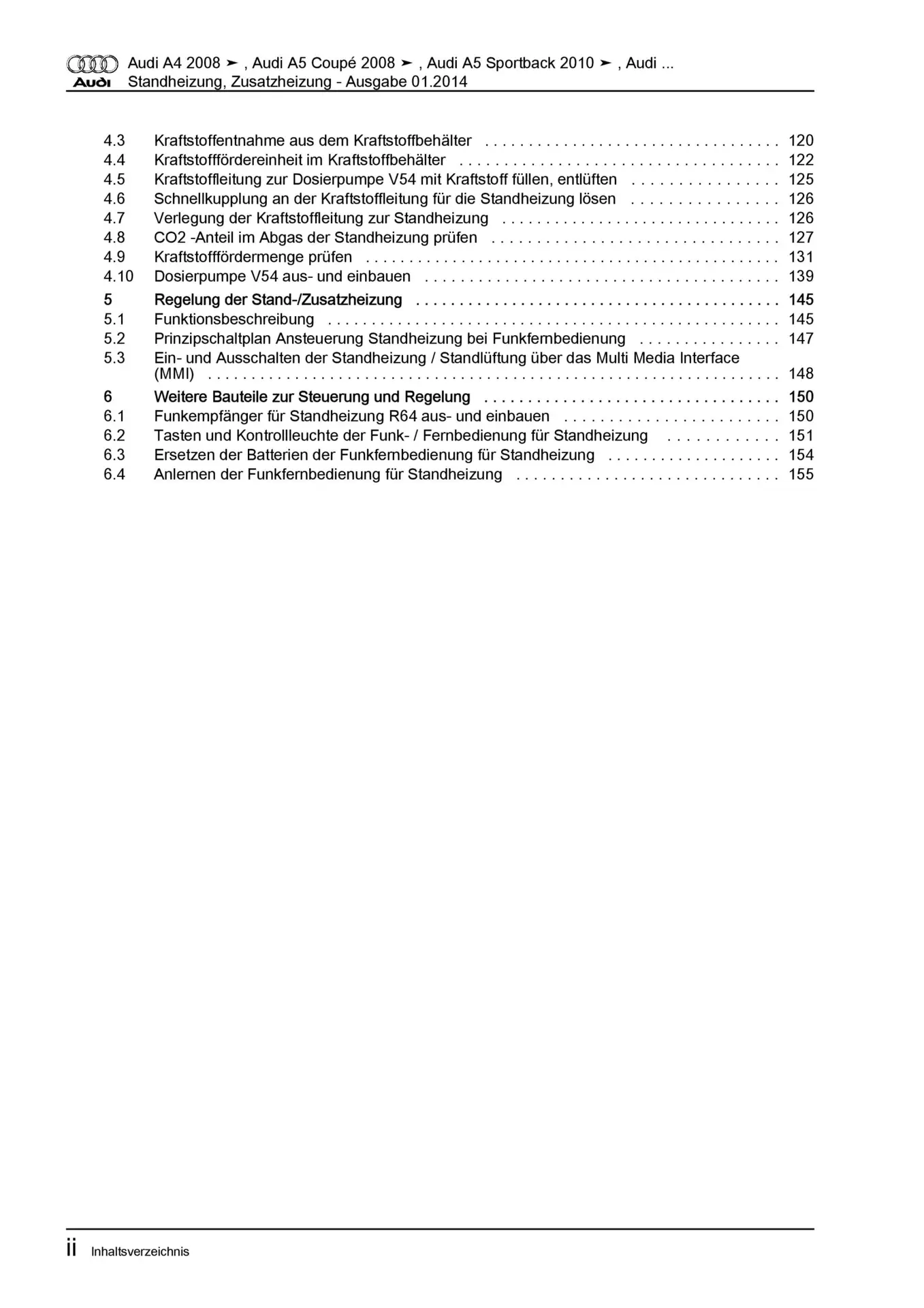 Diese Reparaturanleitung enthält detaillierte Beschreibungen zu Aus- und Einbauarbeiten, Einstell- und Prüfarbeiten sowie zahlreiche Grafiken, Bilder und Explosionszeichnungen. Die Kunststoffringbindung ermöglicht ein problemloses Umschlagen bis zu 180°.
