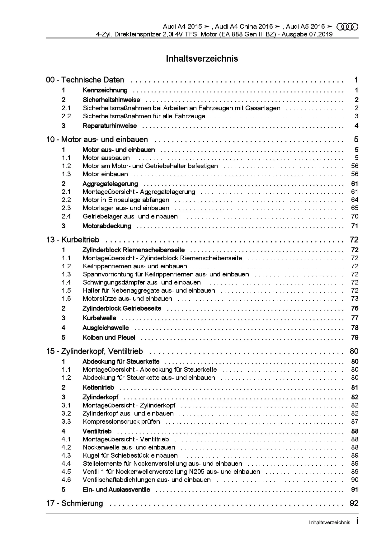 Diese Reparaturanleitung enthält detaillierte Beschreibungen zu Aus- und Einbauarbeiten, Einstell- und Prüfarbeiten sowie zahlreiche Grafiken, Bilder und Explosionszeichnungen. Die Kunststoffringbindung ermöglicht ein problemloses Umschlagen bis zu 180°.
