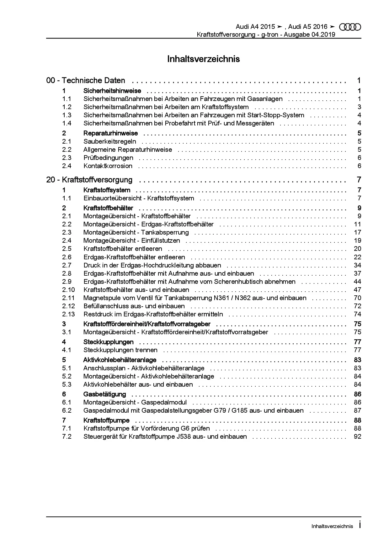 Audi A4 Typ 8W ab 2015 Kraftstoffversorgung Erdgasmotoren Reparaturanleitung