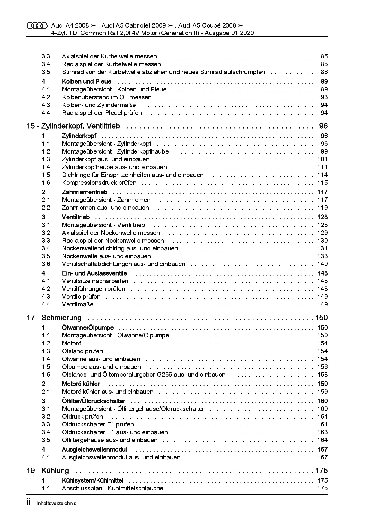 Diese Reparaturanleitung enthält detaillierte Beschreibungen zu Aus- und Einbauarbeiten, Einstell- und Prüfarbeiten sowie zahlreiche Grafiken, Bilder und Explosionszeichnungen. Die Kunststoffringbindung ermöglicht ein problemloses Umschlagen bis zu 180°.
