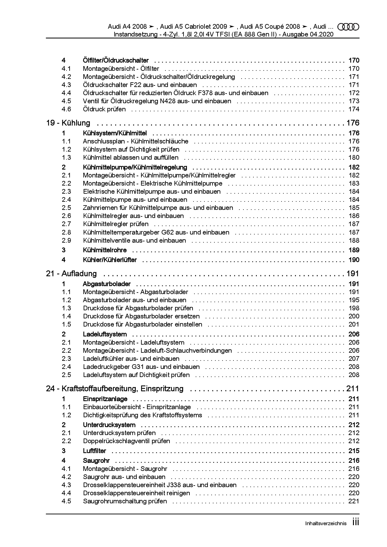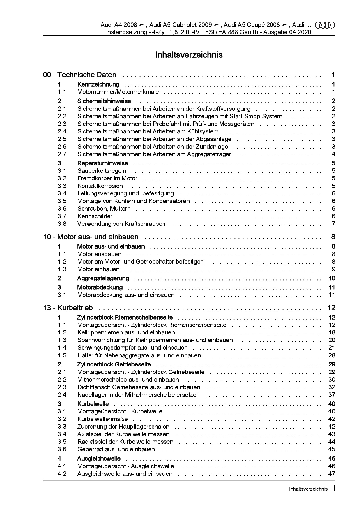 Diese Reparaturanleitung enthält detaillierte Beschreibungen zu Aus- und Einbauarbeiten, Einstell- und Prüfarbeiten sowie zahlreiche Grafiken, Bilder und Explosionszeichnungen. Die Kunststoffringbindung ermöglicht ein problemloses Umschlagen bis zu 180°.