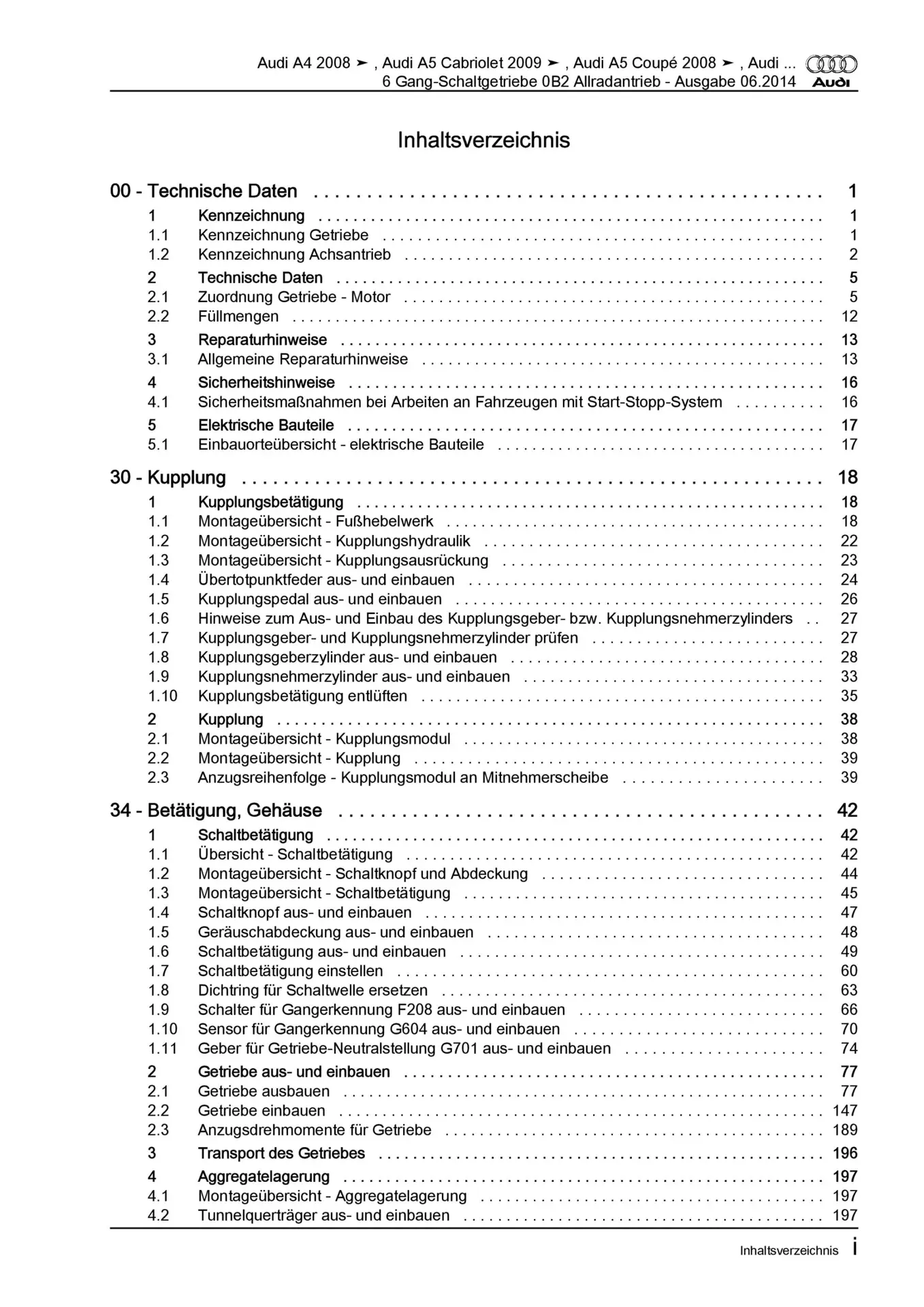 Audi A5 8T 2007-2016 6 Gang Schaltgetriebe 0B2 Kupplung Reparaturanleitung
