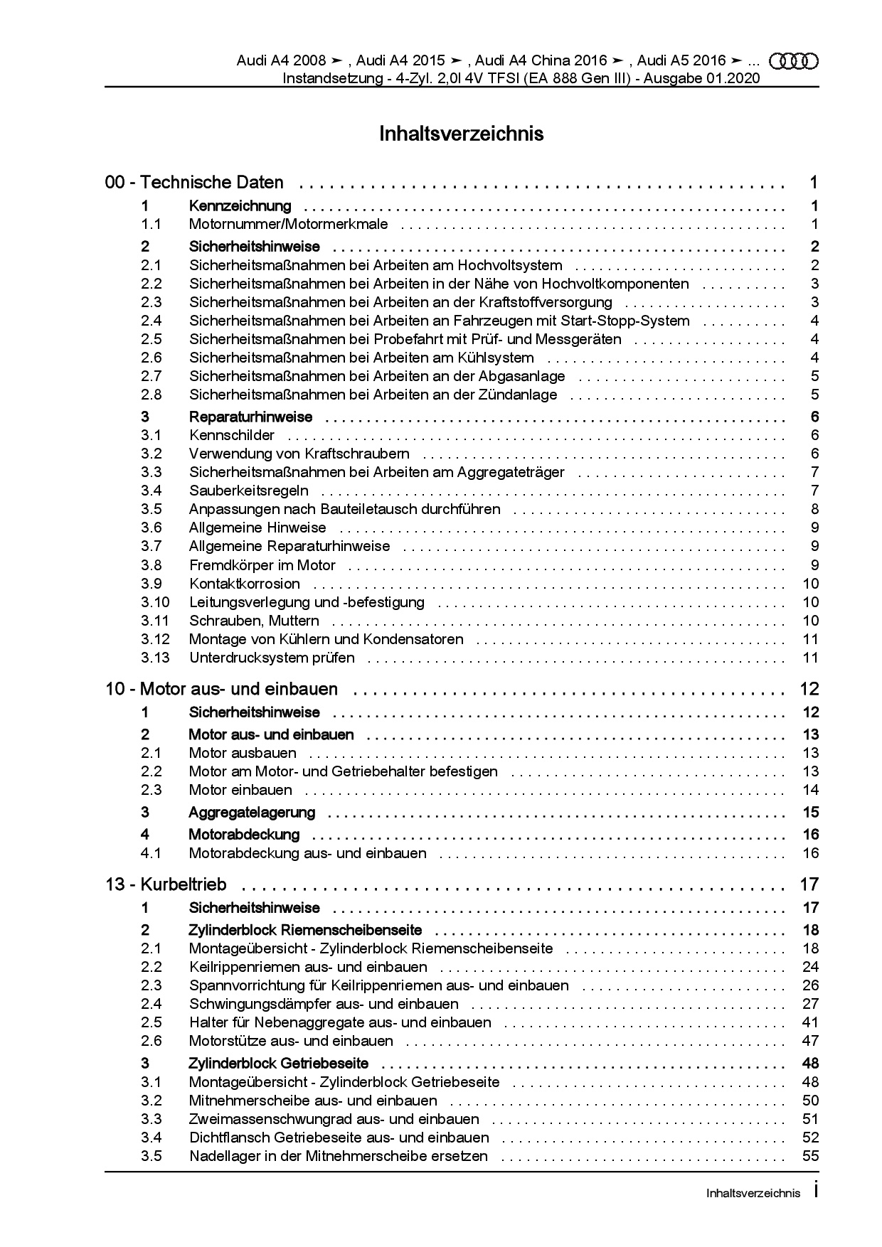 Diese Reparaturanleitung enthält detaillierte Beschreibungen zu Aus- und Einbauarbeiten, Einstell- und Prüfarbeiten sowie zahlreiche Grafiken, Bilder und Explosionszeichnungen. Die Kunststoffringbindung ermöglicht ein problemloses Umschlagen bis zu 180°.