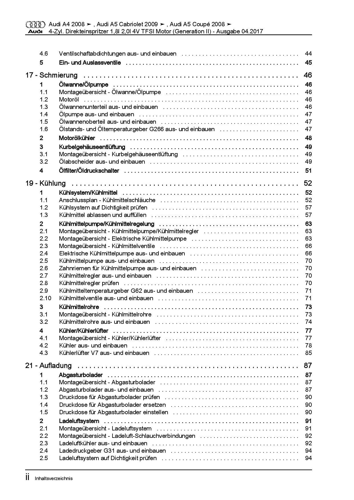 Audi A5 Typ 8T 2007-2016 4-Zyl. Benzinmotor 120-220 PS Reparaturanleitung