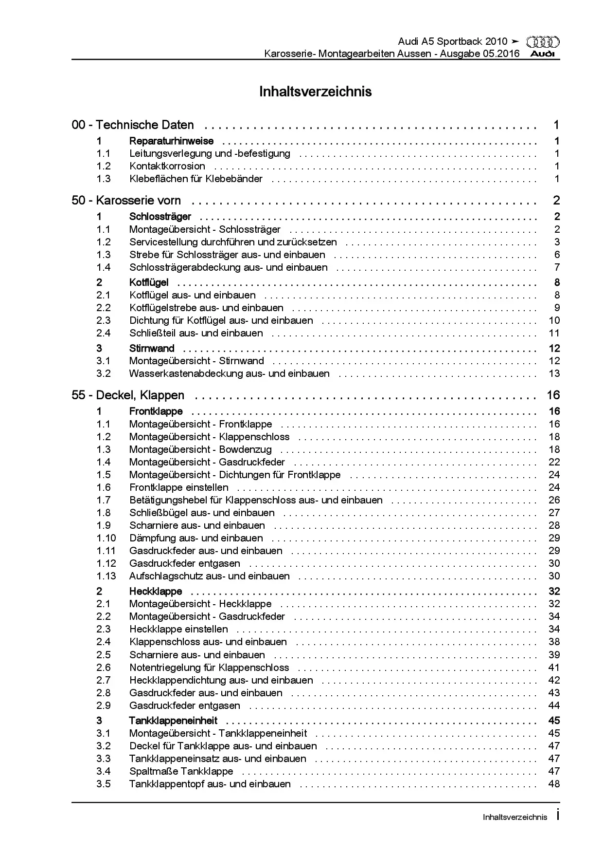 Offizieller Audi A5 Sportback Reparaturleitfaden