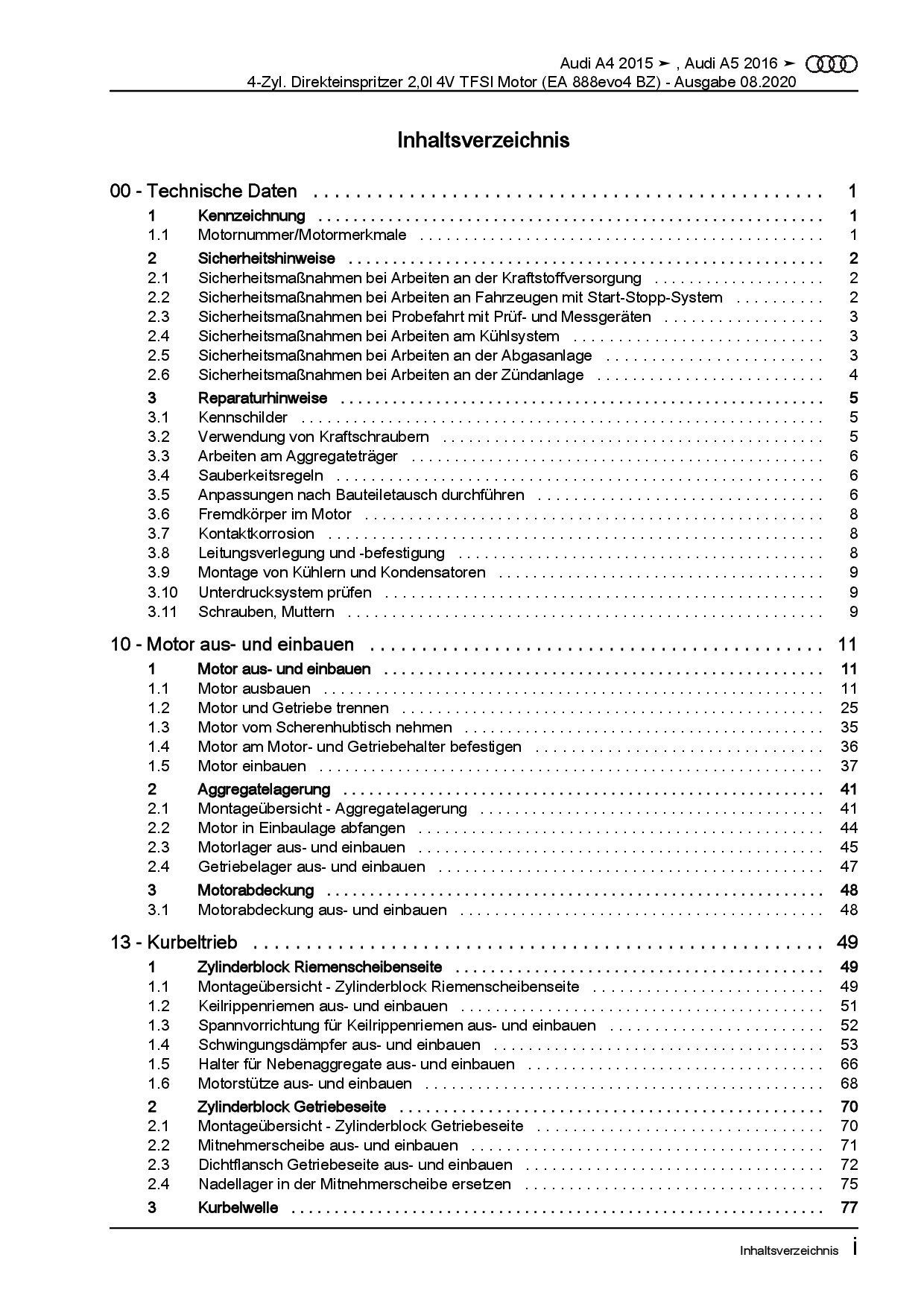 Diese Reparaturanleitung enthält detaillierte Beschreibungen zu Aus- und Einbauarbeiten, Einstell- und Prüfarbeiten sowie zahlreiche Grafiken, Bilder und Explosionszeichnungen. Die Kunststoffringbindung ermöglicht ein problemloses Umschlagen bis zu 180°.