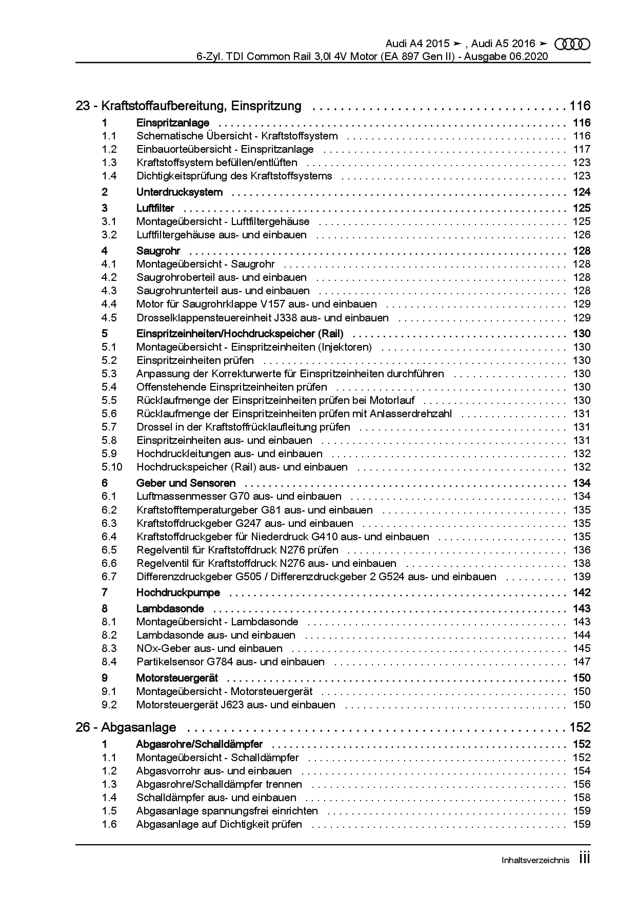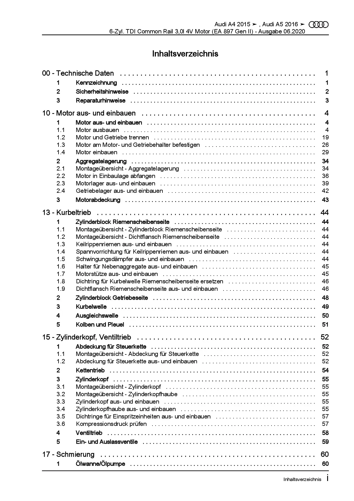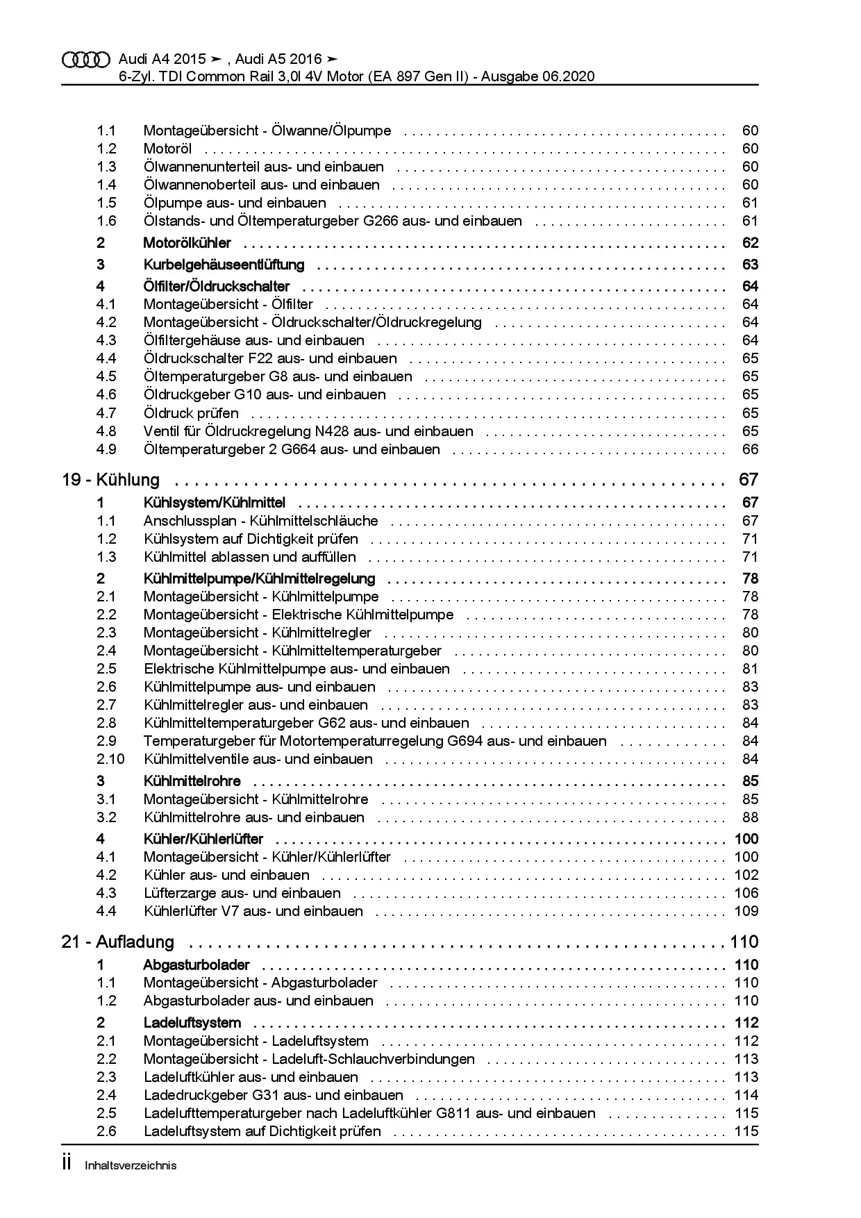 Audi A5 Typ F5 ab 2016 6-Zyl. 3,0l Dieselmotor TDI DCPC DCPE Reparaturanleitung