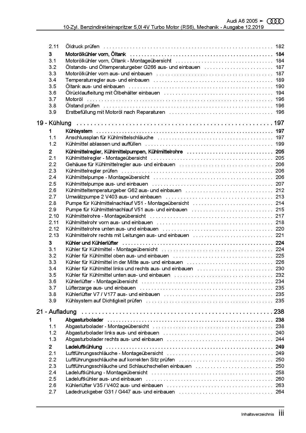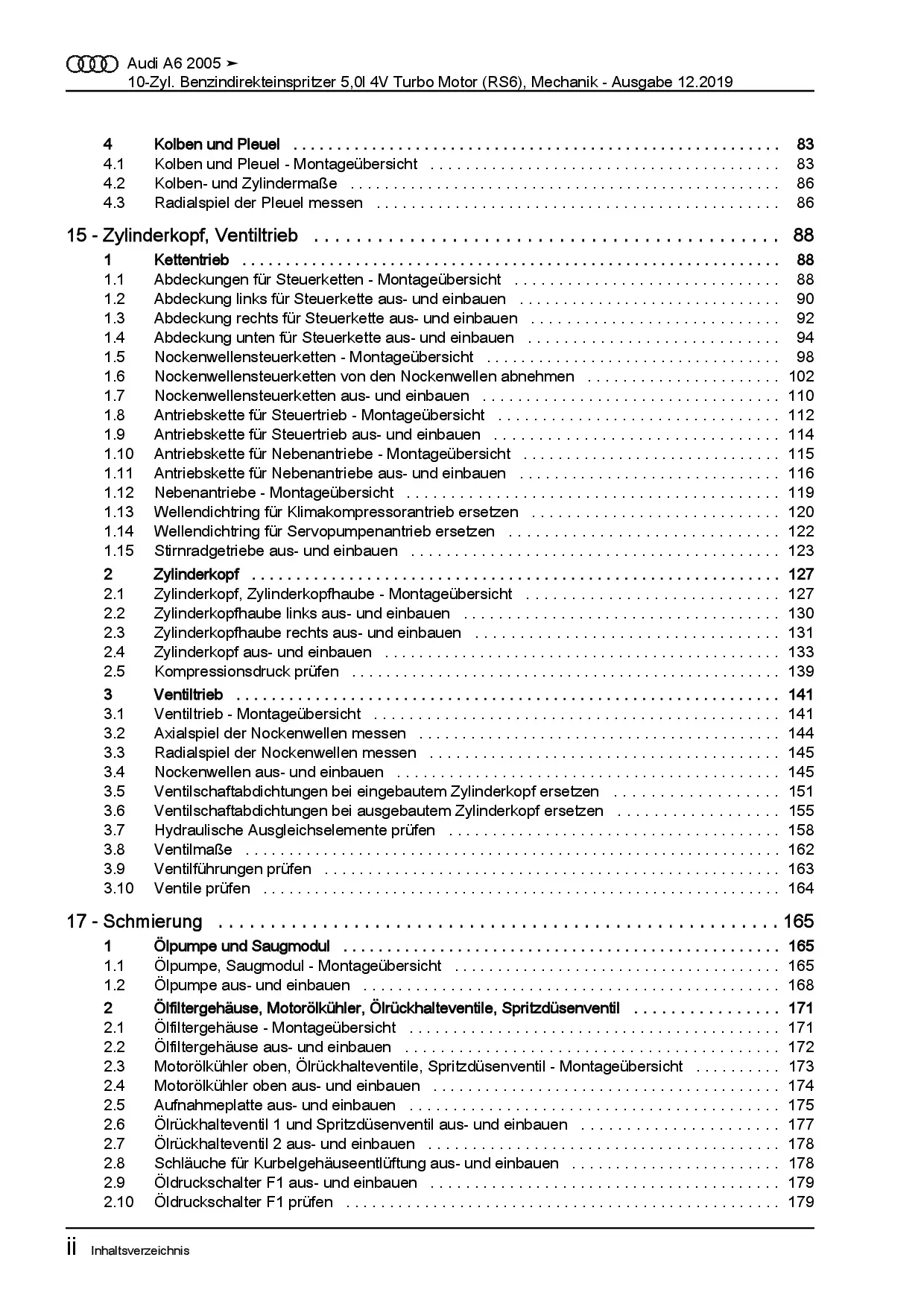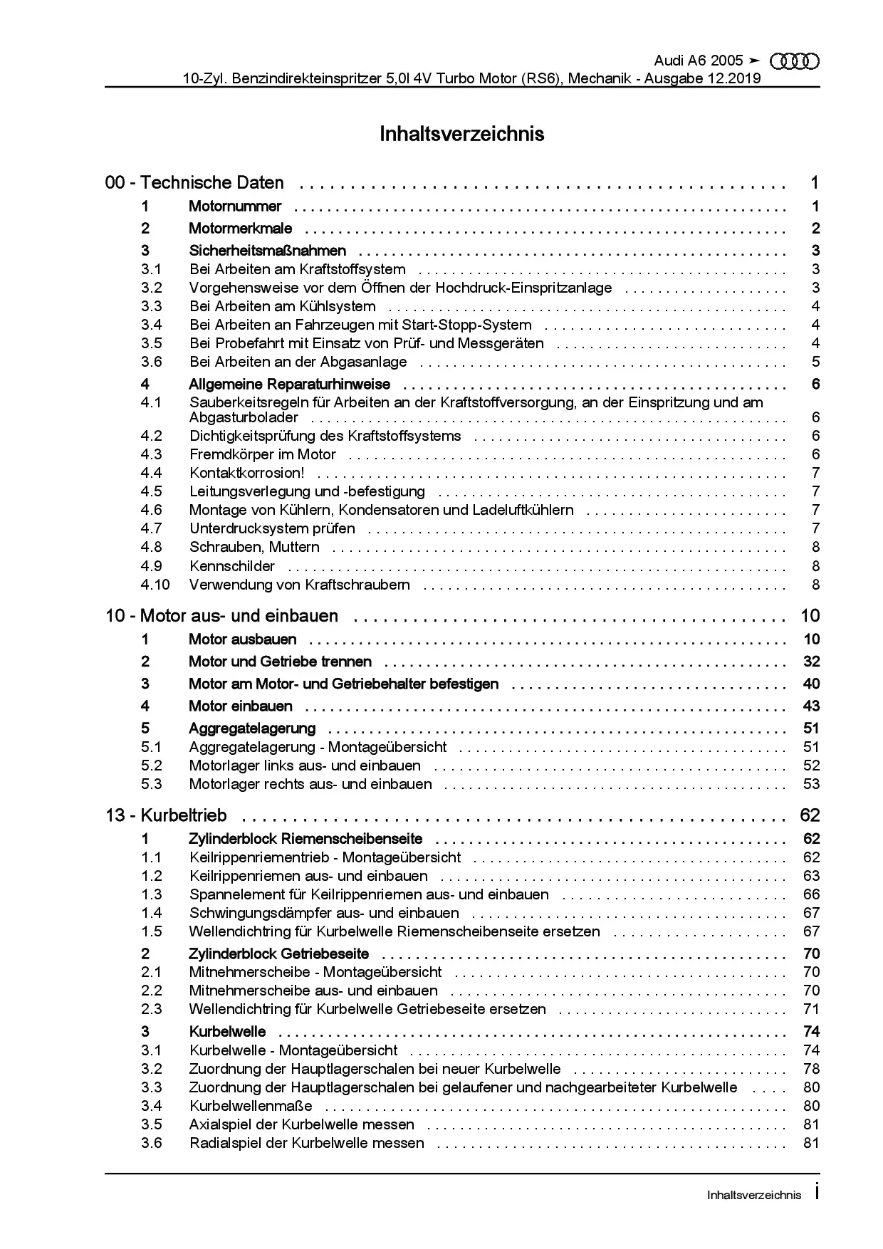 Audi A6 4F 2004-2011 10-Zyl. Benzinmotor 579 PS RS6 Mechanik Reparaturanleitung