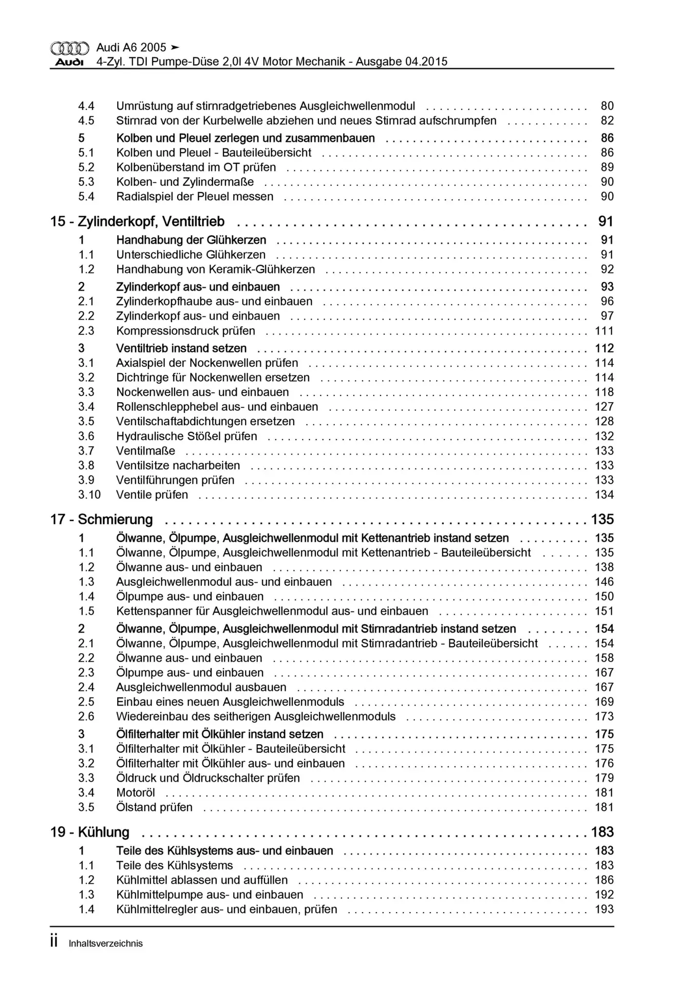 Diese Reparaturanleitung enthält detaillierte Beschreibungen zu Aus- und Einbauarbeiten, Einstell- und Prüfarbeiten sowie zahlreiche Grafiken, Bilder und Explosionszeichnungen. Die Kunststoffringbindung ermöglicht ein problemloses Umschlagen bis zu 180°.